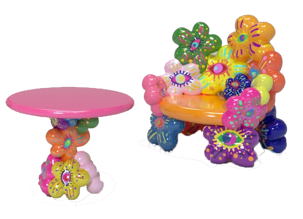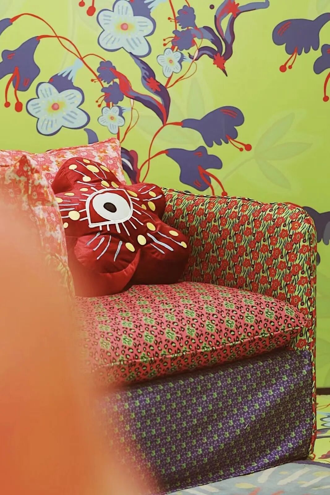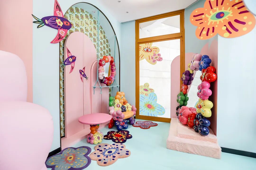 “宇宙花花大爆炸”中重复出现的人脸,在花团锦簇的FAFA宇宙中带来独特的女性观点与视角。人脸化身为挂毯、艺术家具以及气膜雕塑等多重形式,在FAFA宇宙中闪现。
