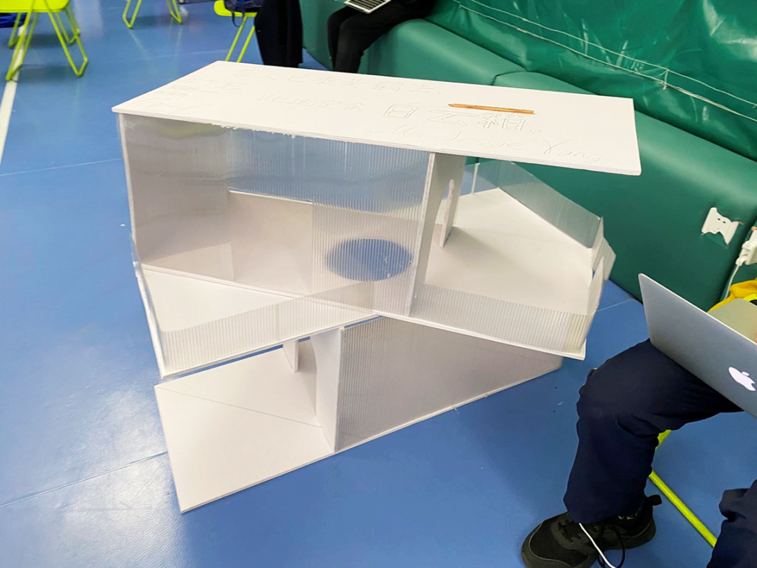 此次活动以演讲结合创意工坊的形式展开,卫宏涛在手作环节中,与同学们组队,在短短的2小时里,通过高效的团队协作,完成了一个大胆创新又妙趣横生的未来居所模型。