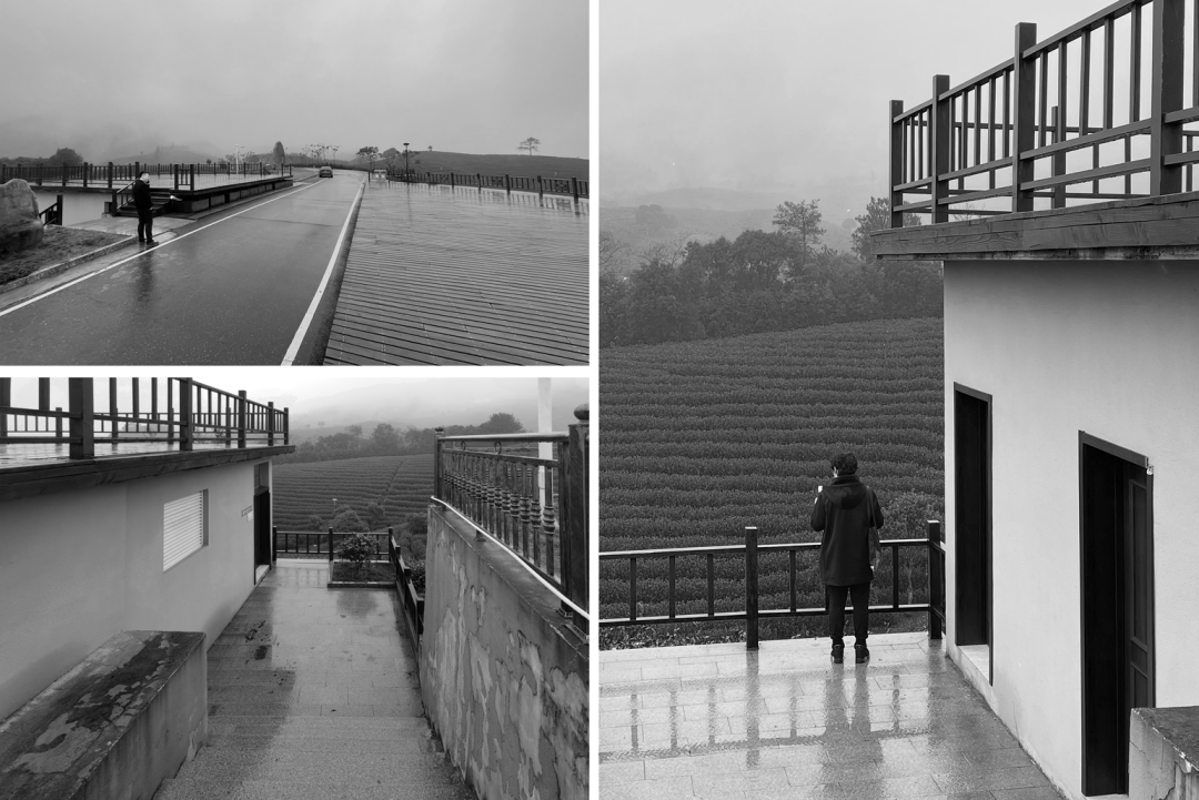 在茶室以外,我们还设计了两座位于茶山制高点的开放式观景平台,它们的设计灵感源自这里的村民最引以为傲的物产——白茶。