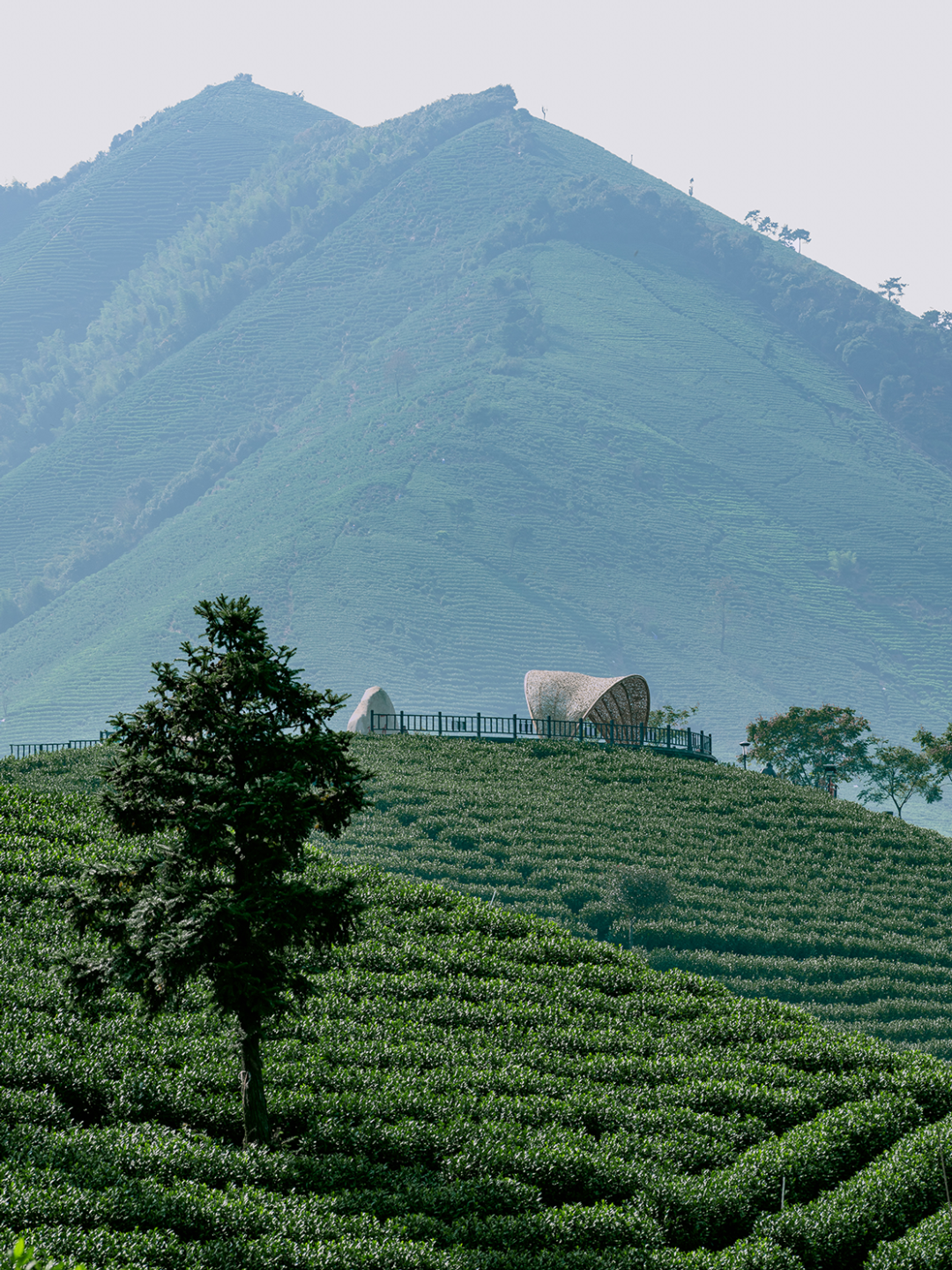 观景平台及茶室,是HATCH为安吉“白茶小镇”操刀设计的首秀之作,位于苍翠茶山的高处,来客在品味香茗之时,亦能将茶田美景尽收眼底。