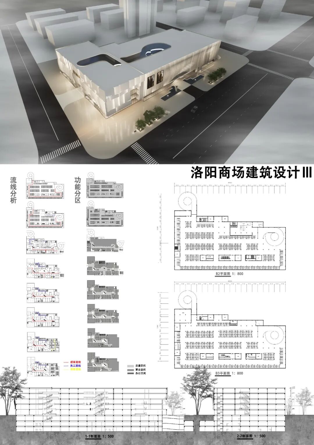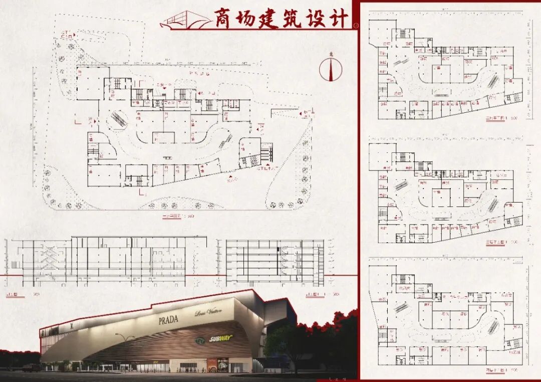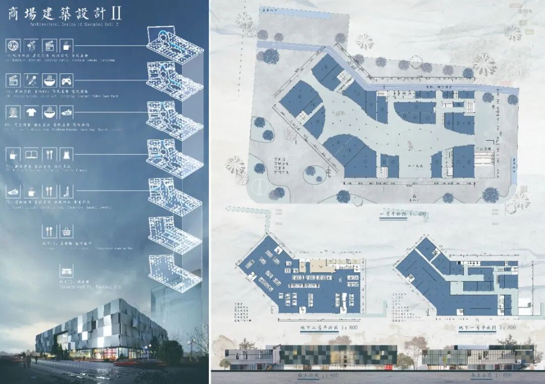 河北大学建筑系三年级课设作品:商场设计