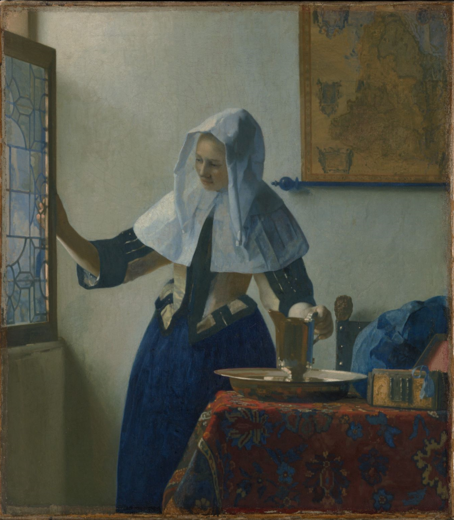 色彩:不难发现,维米尔的画中经常出现蓝色、黄色以及红色,也就是俗称的三原色,而他最出名的那些作品,大多都是蓝黄对比色