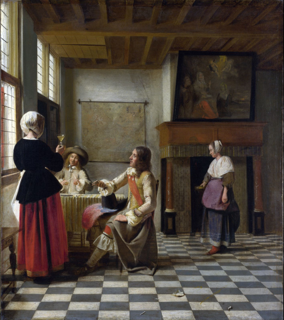 透视:在维米尔的作品中,室内空间的场景出现的频率最高,他也最爱通过格子的地板暗示出空间感