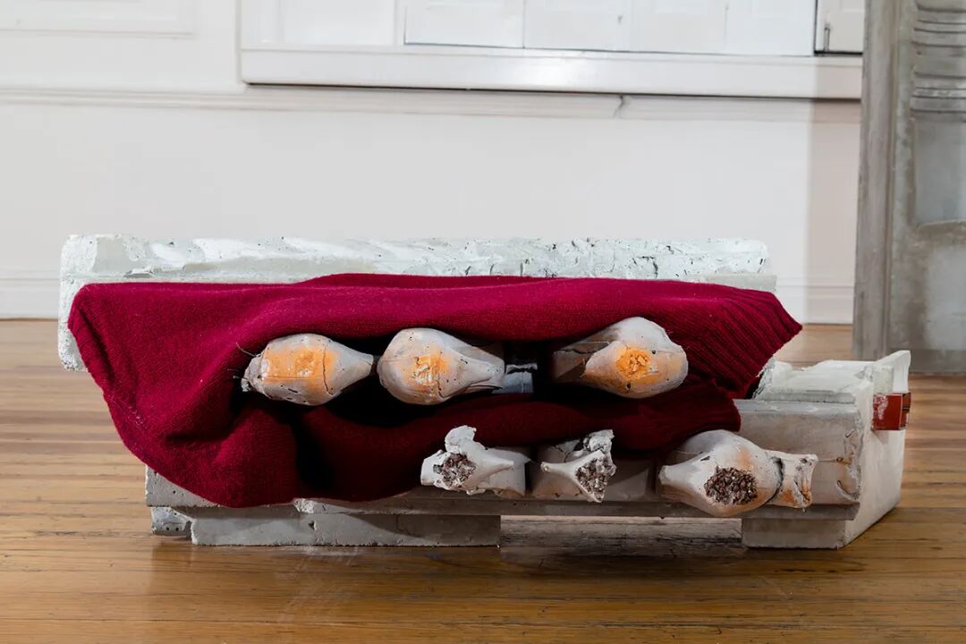 无题(Voy, sí),混凝土、颜料、钢铁、蜂蜡、粘土、纺织品,52 x 84 x 70厘米,2020