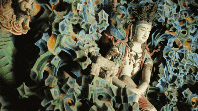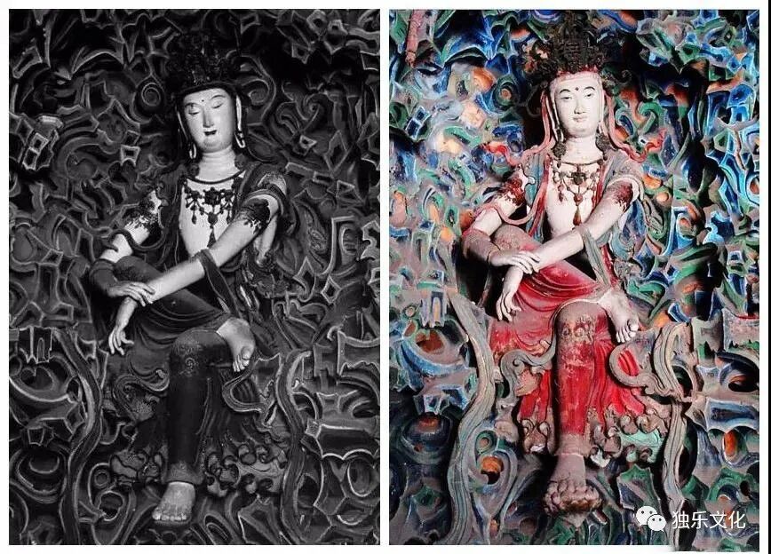 五彩悬山、倒坐观音塑于宋代,有专家考证,宋代观音逐渐呈现世俗化的特点。