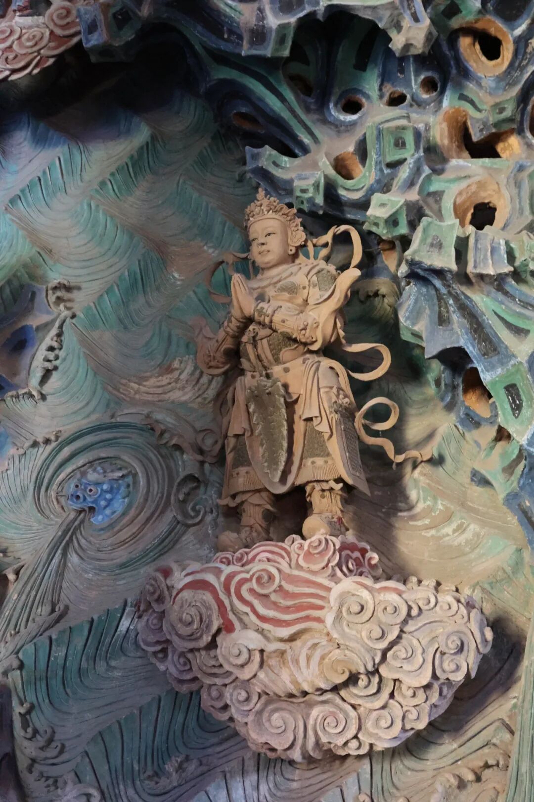 其高7.5米,长15.7米,国内现存古代悬塑中规模较大的一壁。