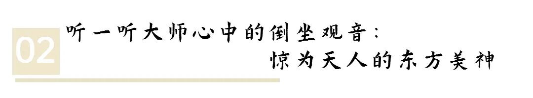 你们看倒坐观音和别处的一样吗?她多么富有人情味。你在她前边哪个方向看她,她都能转睛看着你、俯视着你,似欲和你交谈。”