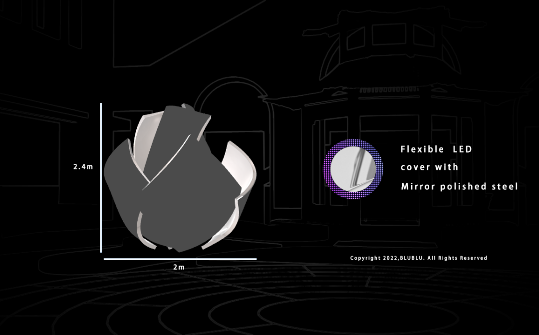 以“花”作为整体造型的灵感,利用超高清LED柔性屏的特性,通过参数化建模,打破了传统显示屏规则形状的限制,创造出动态而富有韵律的曲线弧度,使显示内容更灵活多样。结合全域环绕音场、自然疗愈声效等的应用,为用户呈现了一个多维度、多感官的艺术自然疗愈场域。