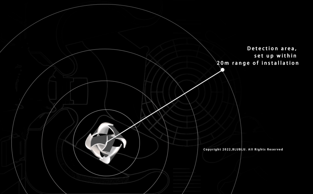在定位映射系统中,利用雷达检测用户与七色花的距离,以此作为参数控制粒子的释放量,同样地采用OpenCV计算检测区的对象,以装置为中心半径为20m的区域切割并映射到装置的相应位置,最后在检测的位置实时生成旋度噪波粒子。