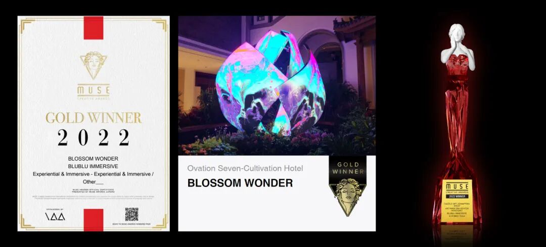 该项目已斩获2022 MUSE CREATIVE AWARD 金奖,MUSE国际创意大奖创办于美国纽约,由美国国际设计奖项协会(IAA)主办,是全球创意设计领域最具影响力的国际奖项之一,以严格的评审体系和高质量的评判标准著称,吸引着众多国际顶尖广告及设计公司,如:宜家、索尼影业、劳斯莱斯、宝马、可口可乐公司、惠普企业、W酒店、思科、BBC Studios等。