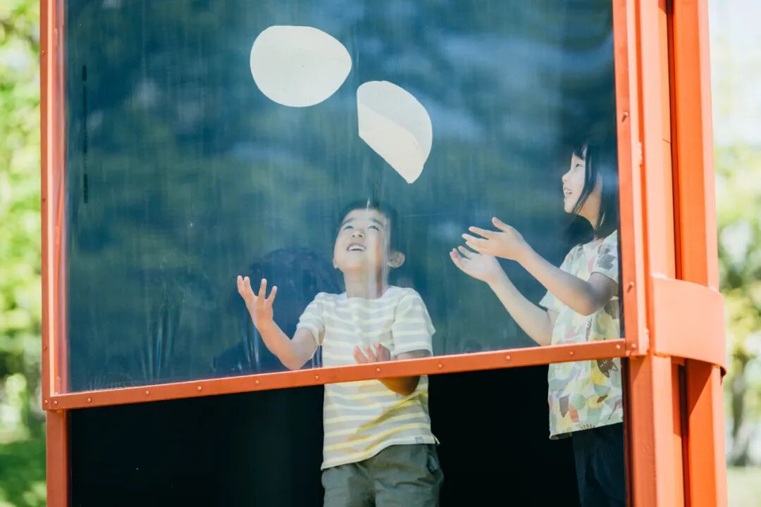 「空」既是天空,也是空气。是一群充满空气并具有各种形状的透明“气球”。它们由不同尺寸和硬度的塑料组成,像天空中的一朵云。不同的是,你可以坐在上面、拆分或移动它们,或是抛向空中。在这些过程中,孩子们能够感受到空气阻力对这些不同重量和硬度的“气球”产生的影响,从而更直观地理解什么是「空」。