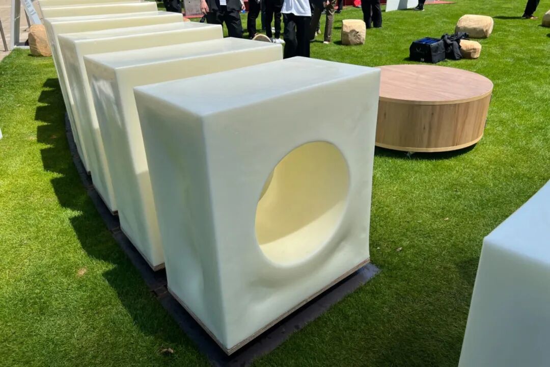 除了这些以地球元素为主题的大型玩具,还有两位建筑师还在场地内进行户外家具的设计,同样充满巧思。