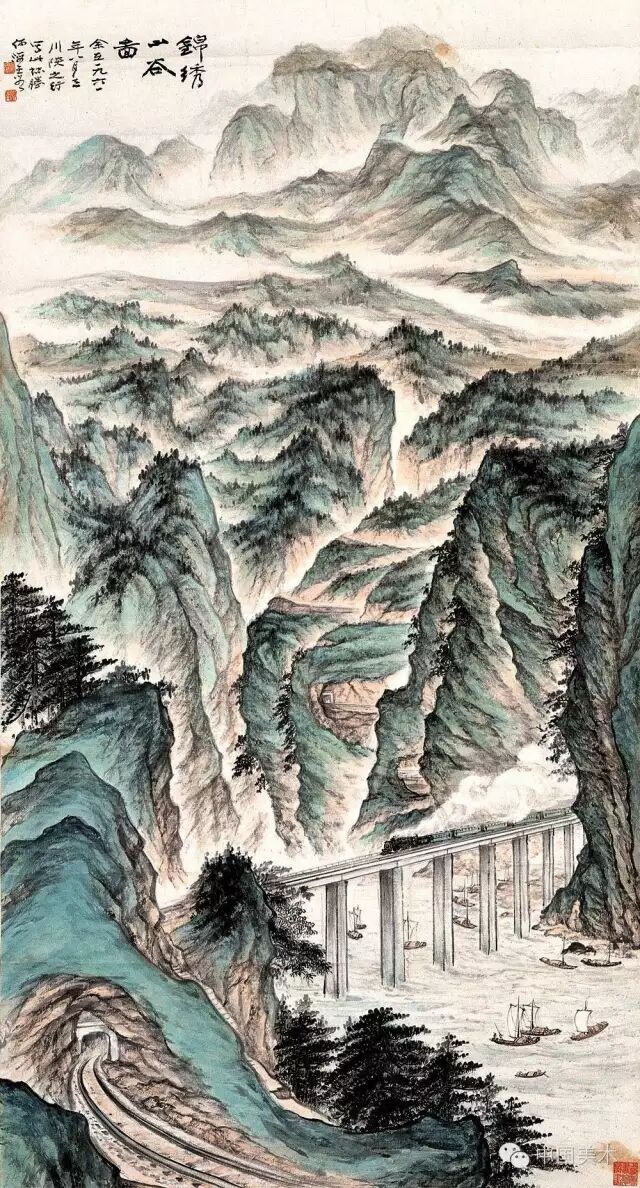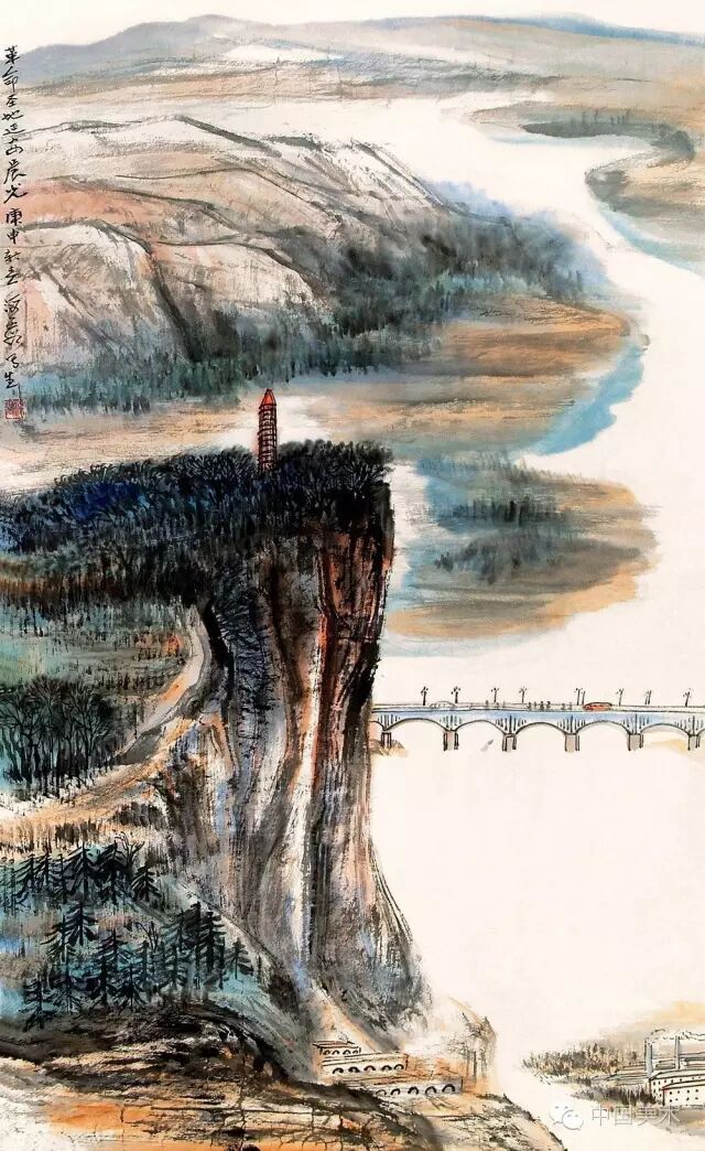 我创作时,常常把山搁到上头去,有时也把山放在底下来,这就可以使我们在描绘同一个地方时,能产生很多的构图和不同的意境,就不至于千篇一律。