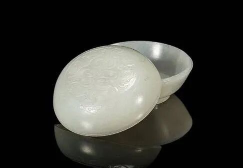 清 白玉如意纹香盒