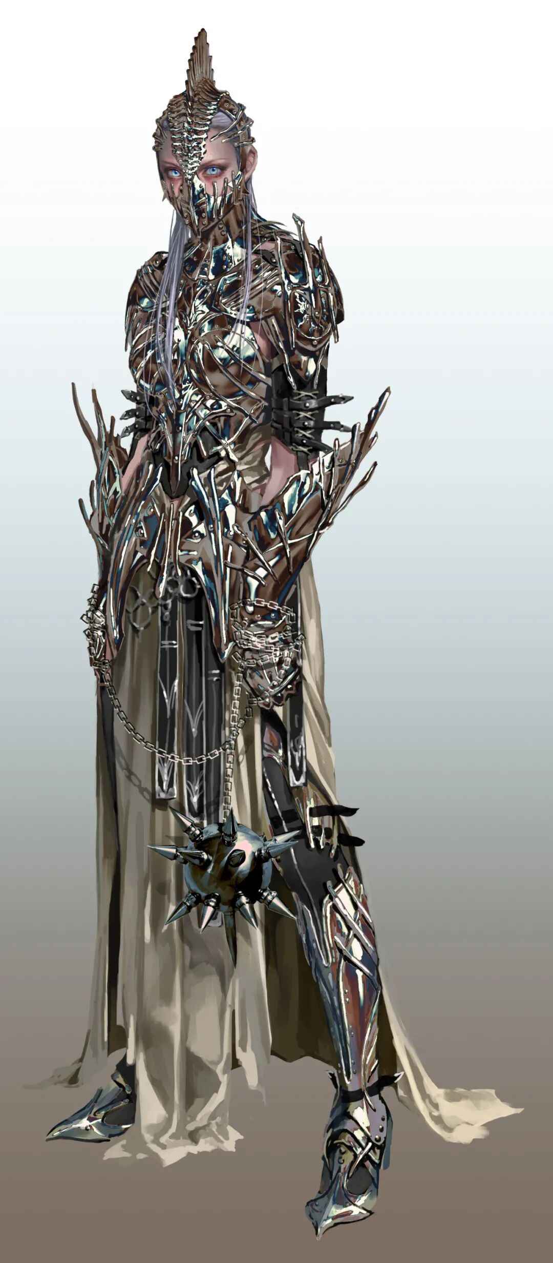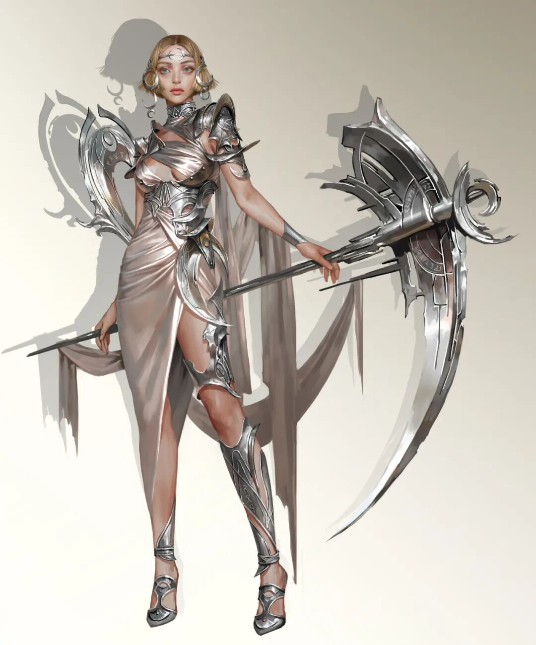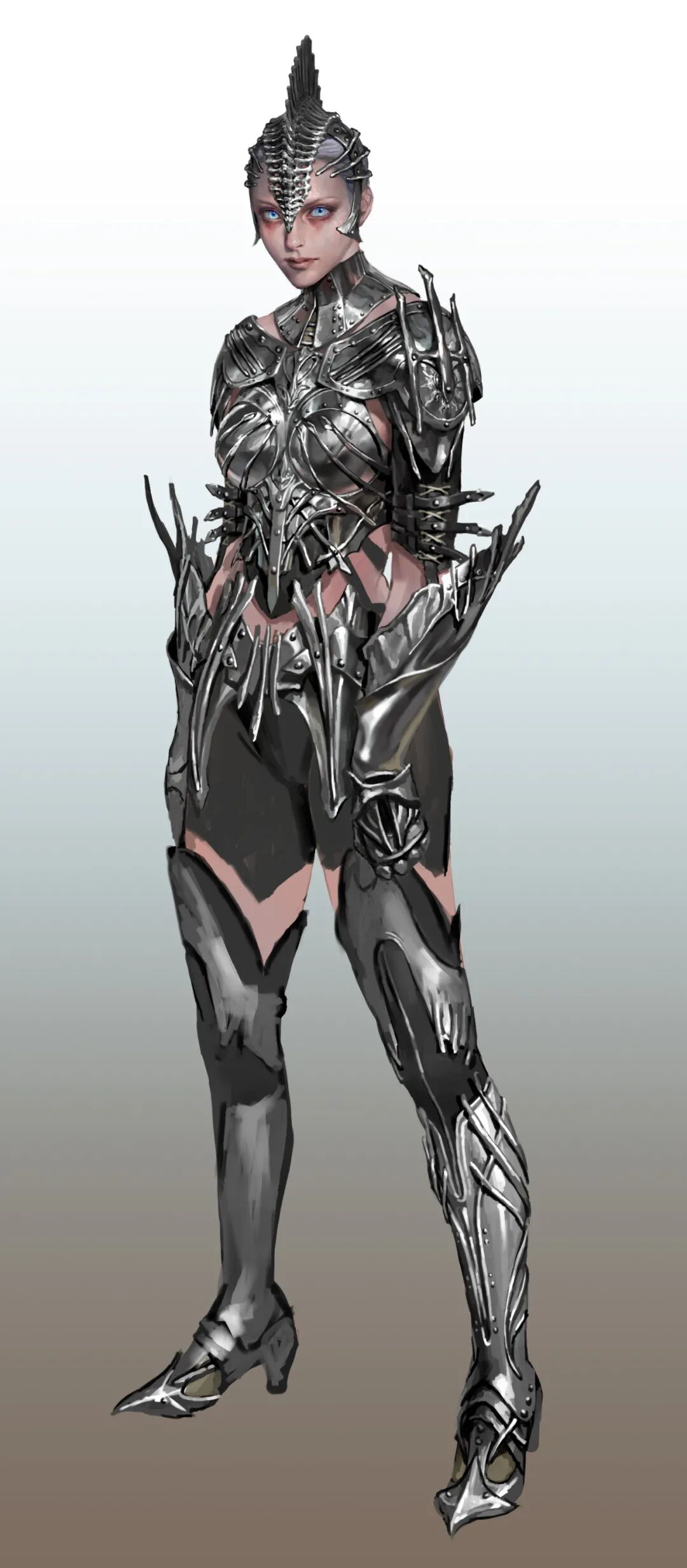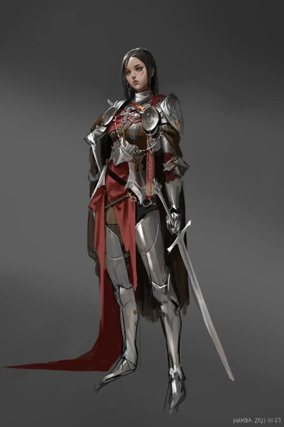 来自韩国的概念设计师/插画师,曾任职于NEXON、NCsoft、Netmarble以及Pearl Abyss等游戏公司。网上的个人资料较少,主要是通过Artstation分享自己的画作,目前近期公开了几组最新个人作品。她的作品笔触感强,刻画细腻,尤其是对于质感和光感的处理很棒,擅长用高饱和度的颜色营造不同的明暗体积,和其他韩国画师不同的是,她更注重脸的刻画而并非腿部和身材,擅长将女性的柔美融合盔甲等硬核工业元素,展现笔下的女性健康,展现出了一种高度的力量美。