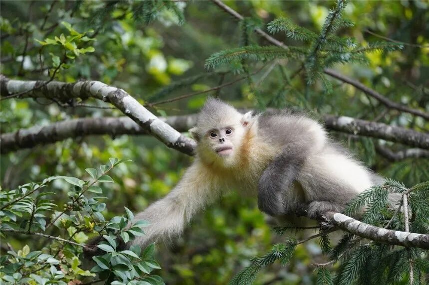 滇金丝猴是我国独有物种,国家一级保护动物,被列入世界濒危物种红色目录。时尚的莫西干头,肥厚的“烈焰红唇”,高高竖起的尾巴,潇洒的“树上芭蕾”都令人难忘。它们终年生活在海拔3000米以上的高山针叶林带里,仅分布在中国川滇藏三省区交界处——喜马拉雅山南缘横断山系的云岭山脉当中,澜沧江和金沙江之间一个狭小地域,被誉为“雪山精灵”,有着大熊猫般的国宝地位。