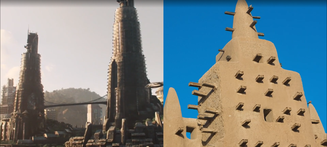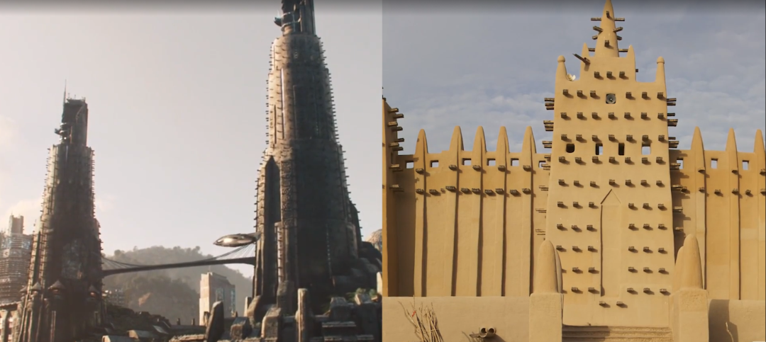 《黑豹》于2018年首映时,观众被带入了漫威电影宇宙中虚构的东非国家瓦坎达让人眼花缭乱的风景中。《黑豹2:永远的瓦坎达》现已上映,将影迷带回细节丰富的非洲未来主义场景,美术指导Hannah Beachler正是凭借影片中的场景设计获得了奥斯卡奖。 要了解其中的建筑与设计奥秘,首先需要了解电影中打造的非洲未来主义世界的理念原型,对于外行来说,非洲未来主义是一种由几代艺术家、音乐家、学者和活动家塑造的流动意识形态,其目的是重振文化自信。 非洲未来主义 01 非洲未来主义是指导社会的文化蓝图,这个词是马克·德里 (Mark Dery) 于1993年创造的,但诞生于被奴役的非洲人的脑海中,他们为自己和他们后代的悲惨命运祈祷。最早的非洲未来主义者设想了一个身体上和社会上摆脱压迫束缚的社会,这个世界没有白人至上主义思想,也没有承受暴力压迫的黑人。 黑人活动家要求废除监狱和解散警察国家,非洲未来主义应运而生,成为推动社会进入充满黑人权力时代的指南。 在非洲未来主义中,我们想象自己创造整个世界,在那里我们不仅实现了伟大,而且在我们自己的文化中蓬勃发展。所以《黑豹》这样的电影在非洲侨民中引起巨大共鸣是有原因的。 我们看到了一个历史悠久的黑人社会,兼具着社会的进步,同时保护两者作为生存的手段。非洲人民看到这一点可以激励更多人投资于自己的社区,继续更多的领域占据主导地位,为年轻人创造机会,努力回归自己的生活步调。 现有的权力结构剥夺了为充分发展人格而奋斗的黑人青年的未来,这是黑人社区历史上被剥夺的特权。图画小说家兼《INFINITUM:非洲未来主义故事》和《马蒂的火箭》的创作者Tim Fielder说, “我们有能力展示包容性未来的模样,我们可以展示符合人体工程学的住房和交通、食物和水的平等,以及消除系统性种族主义的样子。当故事嵌入这些视觉效果时,它会呈现出更强大的力量,就是非洲未来主义。” 无论有意与否,非洲未来主义已经融入了反对白人至上主义的社会运动,走向激进主义成为社会公益的未来。 黑人利用这个危机时刻坚持构建社会的新方式,比如食物驱动,互助基金,以及在社区内横向流动的其他形式的护理。但是这种努力很艰难,人们在死去,人们在住房和食物方面没有安全感。 我们真的看到黑人每天都在努力建设和实现一个不同的未来,正是这种精神指导了美国几代黑人领导的运动——密西西比自由之夏、石墙暴动和当前的争取黑人生命运动。在公共卫生危机中,社区正在与担心公平未来的机构作斗争,因为平等会终结其存在。 尽管许多人一开始都相信一切皆有可能,但很难设想出这样的未来,即个人可以变得完整,可以在现实的局限或认知之外追求伟大。但这些实践对于非洲未来主义的核心至关重要,它相信必须努力实现解放,这是对社会反对有害权力结构的世代投资。 永远的瓦坎达 02 瓦坎达的首都Birnin Zana,也叫作黄金之城,这是一个巨大的城市,天际线是现代和传统建筑风格的混合,它四面被山脉包围,有一条河流穿过,天际线的起伏直接受到南非莱索托王国周围的马鲁提山脉的启发。 这座城市似乎没有使用网格规划,它遵循构成城市的自然特征的轮廓,这方面可能受到内罗毕的影响,内罗毕近几年经过了爆炸式的扩张,为此制定了发展限制,防止城市扰乱专门用于自然保护区的土地,同样,这座城市也让自然元素融入其中,而不会完全蔓延到周围环境中。 Birnin Zana还与约翰内斯堡之间有许多相似之处,这些地方的建筑高度不一,有些杂乱无章,约翰内斯堡最近的许多增长基本上是不受控制的,所以你会看到许多高层建筑紧挨着低层建筑。 由此我们可以看到瓦坎达首都借鉴了许多现实城市规划案例,另外场景设计师透露许多建筑的形式灵感来源于扎哈,扎哈的作品也确实非常符合漫威始终如一的太阳朋克风格审美,在瓦坎达这个乌托邦一般的国家中,没有战争,没有饥饿,没有环境危机没有气候问题,流线型的未来感造型能让观众更容易代入电影呈现的世界观中。 另外,城市一旦解决了工业社会遗留的问题,自然环境就顺理成章成为连结城市各部分的纽带,城市中没有大规模的高速公路,没有以汽车为导向的基础设施,所有区域似乎都是直接与自然相联系的,证明这是一个非常适合步行的地方,用某种公共交通实现了可达性。 高耸的城堡大院是瓦坎达统治者的家,体育场馆般的灵感来自杰内大清真寺和Djinguereber清真寺,建筑表面的突出物叫做torons,它们是成束的棍子,用于帮助维护建筑并提供类似于混凝土钢筋的加固,同时提供了很好的装饰性。 结构的两个主要塔楼通过天桥相连,在视觉上也让人联想到大清真寺的尖塔,因为它们是社会中最重要的建筑,同样,城堡是瓦坎达王国最重要的建筑。 在整个Birnin Zana的高科技摩天大楼中,有一些不太现代的建筑采用茅草屋顶,类似于在西非比较常见的塔塔房屋的土楼。 场景设计师考察了许多非洲民居寻找灵感,比如城堡周围的圆形布局参考了非洲原始的祖鲁围墙,人们的住宅都围着一个大院子,这是早期的社区形态。 在瓦坎达的其他地方也可以找到现实原型,建在山侧的塔楼的灵感来自尼日利亚的卡诺房屋,在豪萨人建造的卡诺房屋的外墙上也发现了装饰外部的复杂图案。有趣的是,卡诺之家真的让每个家庭都能表达他们独特的身份,这