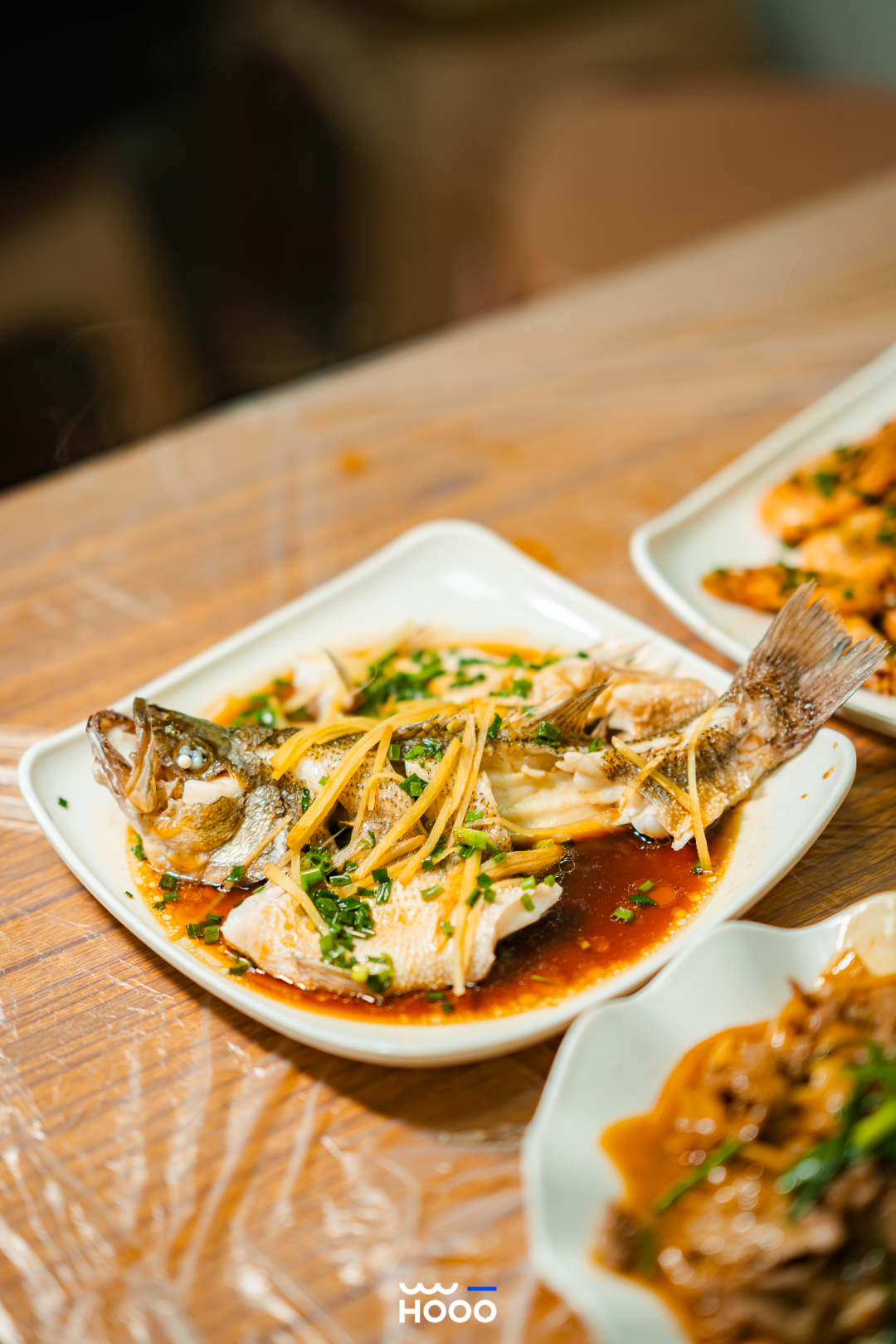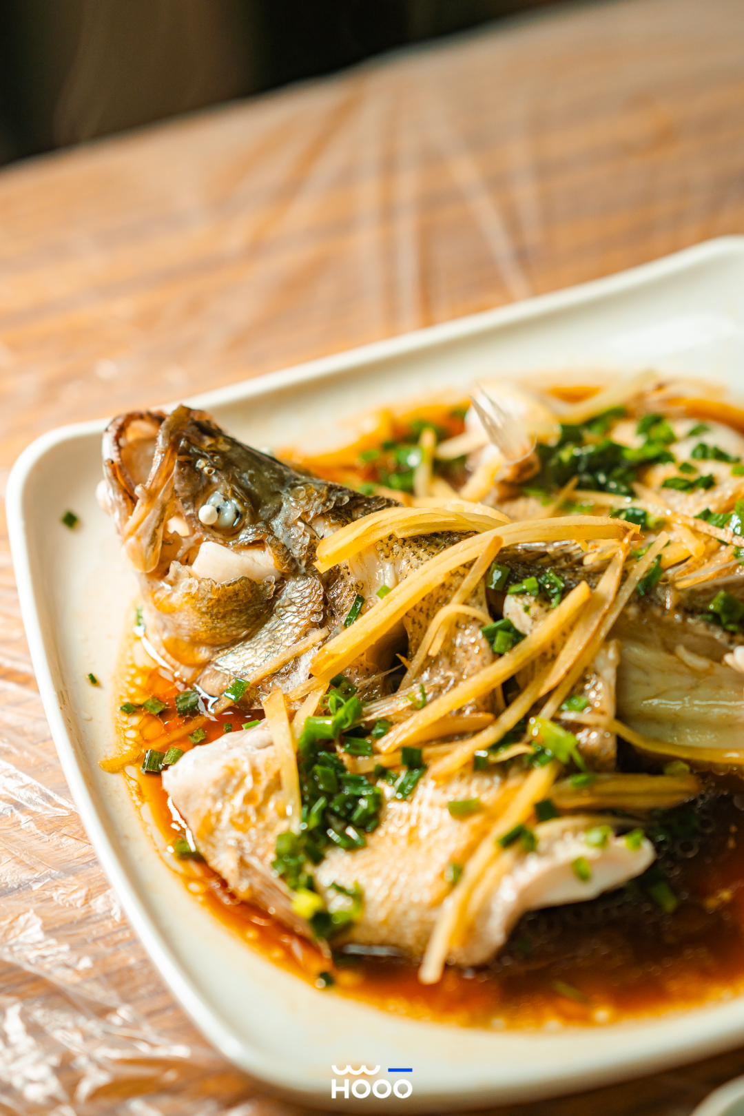 这道清蒸鲈鱼,入口润嫩幼滑,毫无纤维感,口感上乘,成为每桌必点。
