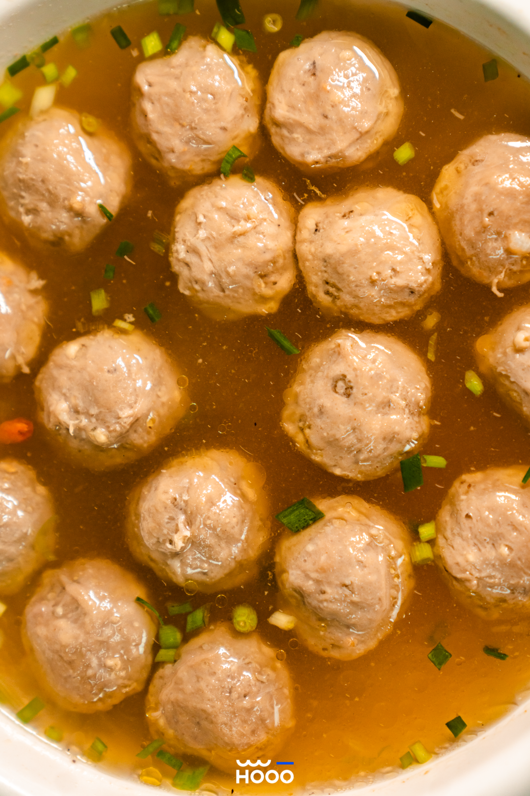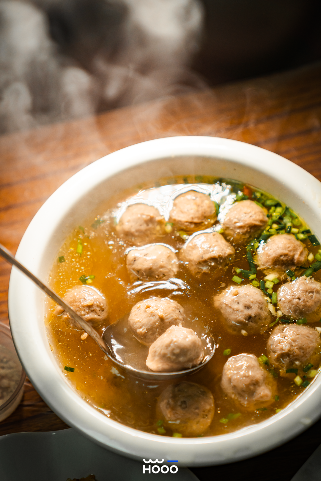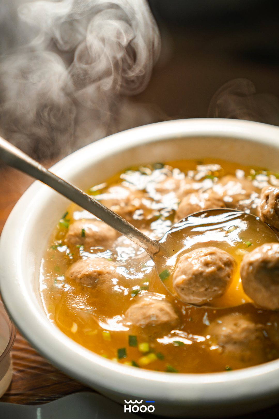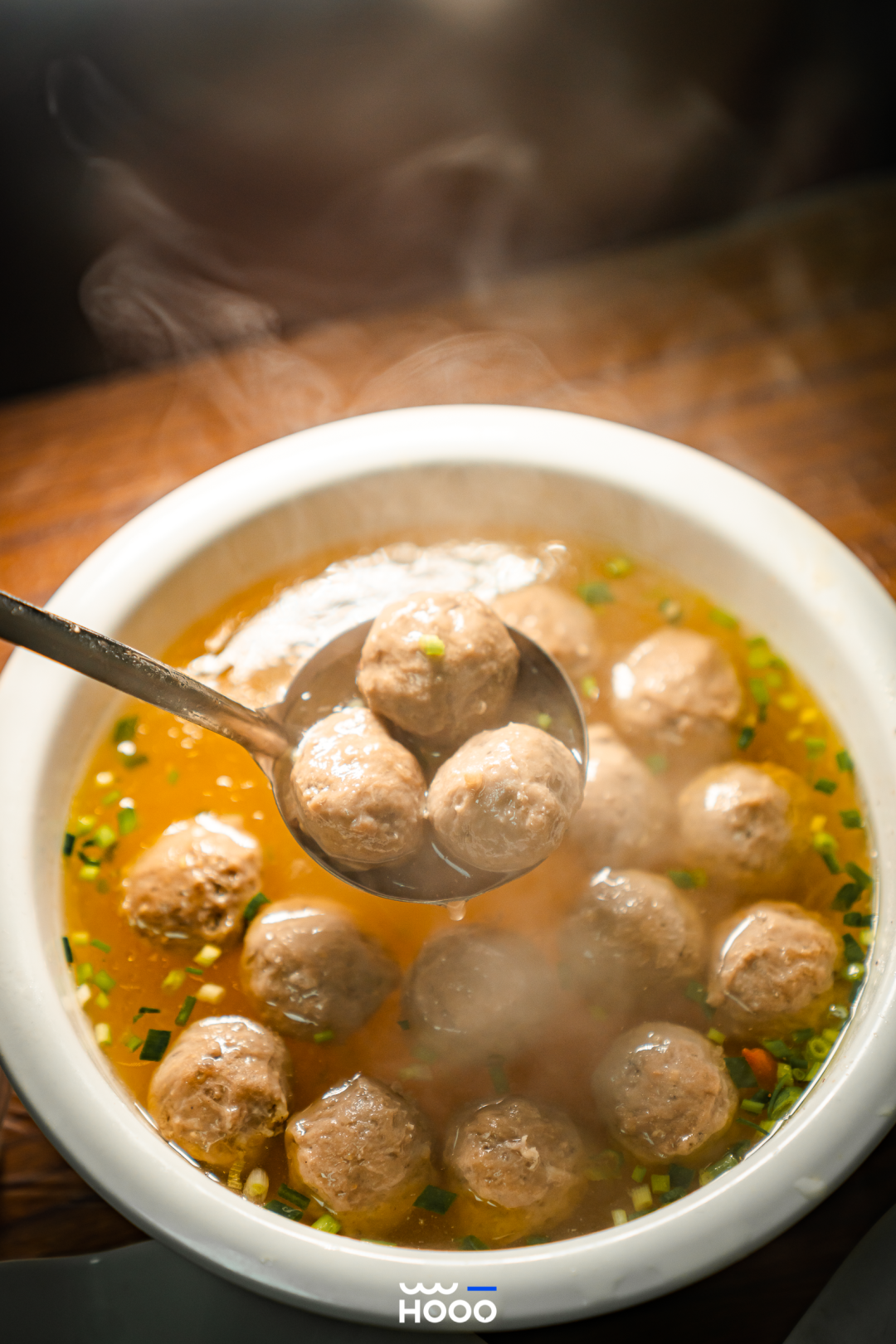 手打牛肉丸肉质细嫩,汁液浓郁,没有煎炒烹饪的烟火气,取而代之的是佐料与时间发生的化学作用。