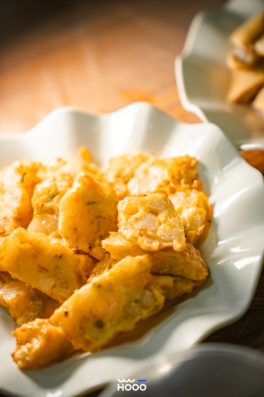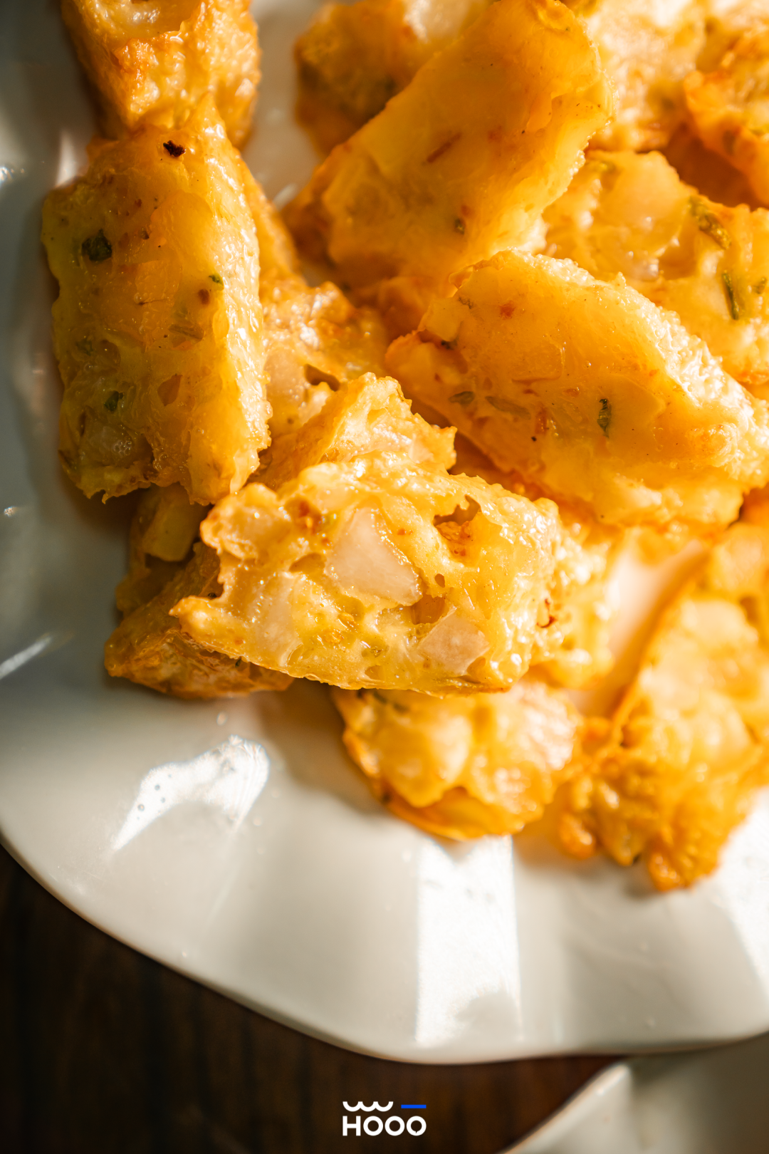 肉的丰腴,马蹄的清香,海虾米的提味,这就是极具潮州特色的粿肉,一种简朴而丰饶的炸物。