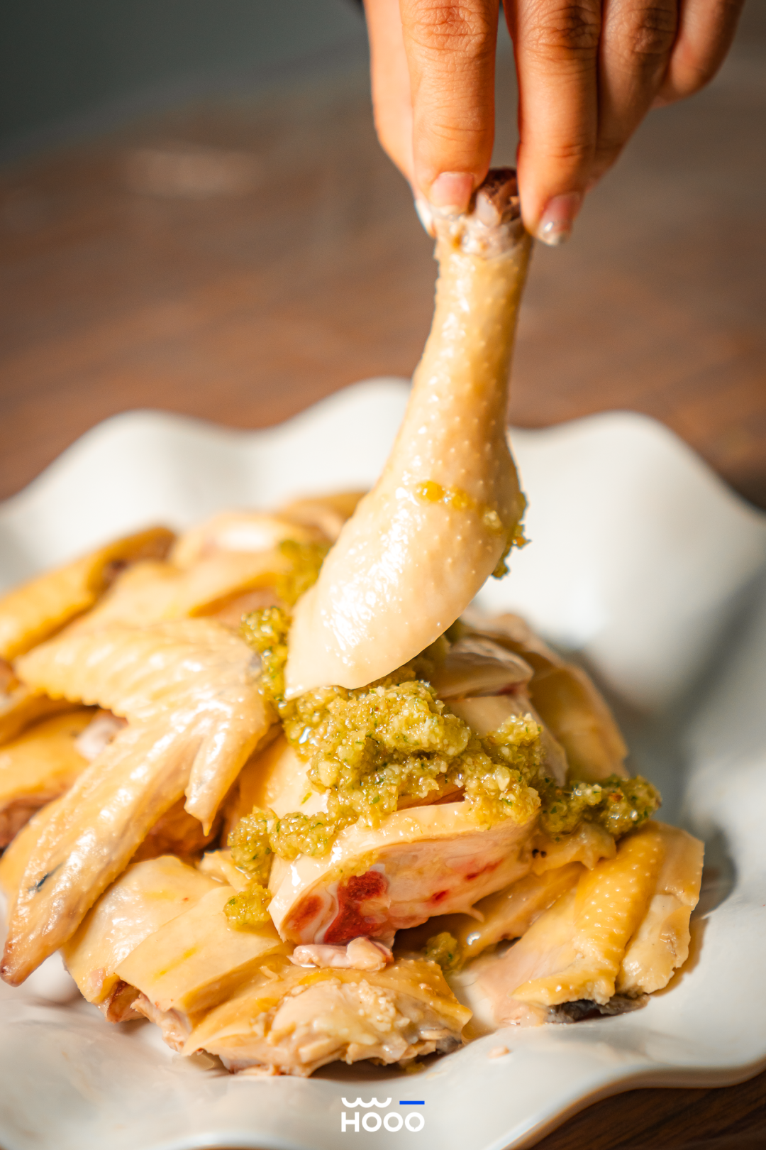 潮州老乡蔡澜大师如此描述:“白切鸡绝对不能全熟。全熟的肉就像是烂布,完全吃不出鸡的香味;懂得吃鸡的人,最享受那层皮。所谓的鸡皮不肥不好吃,皮和肉之间有一层喱状的胶汁最上乘。吃鸡的皮,吸鸡骨中的髓,大乐也。”