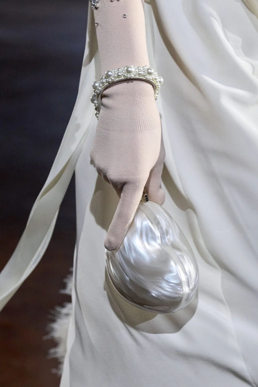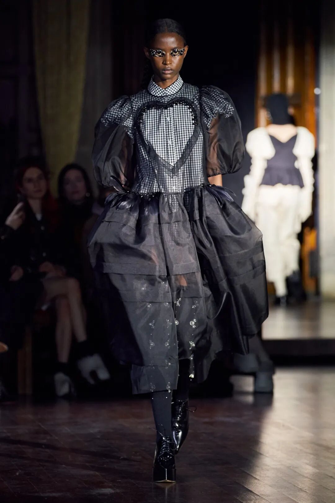 追赶着甜酷少女的浪潮,Simone Rocha用蕾丝、珍珠、缎带、丝绒,将最浪漫的设计语言注入到一场古典主义的视觉盛宴。
