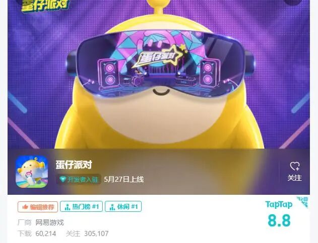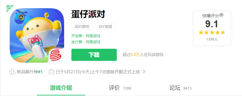 从测试阶段起《蛋仔派对》就收获大量好评,TapTap片评分8.8,好游快爆更拿到了9.1的高分,并且全网公测预约量已突破500W!