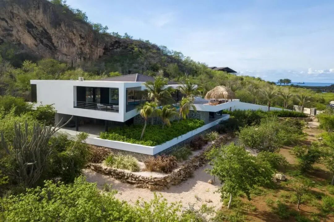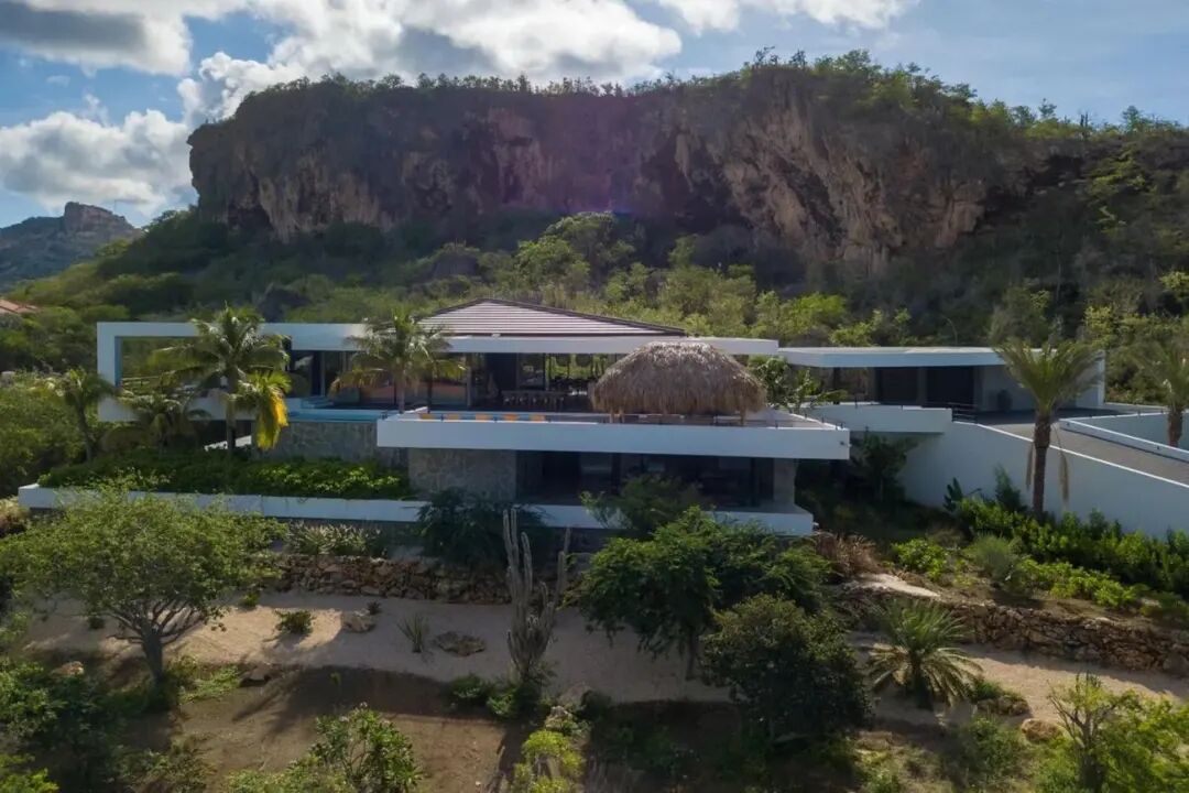 这座高档别墅坐落在库拉索岛一处美丽的景色中,场地位于一座岩石遍布的山坡上。