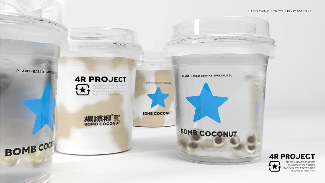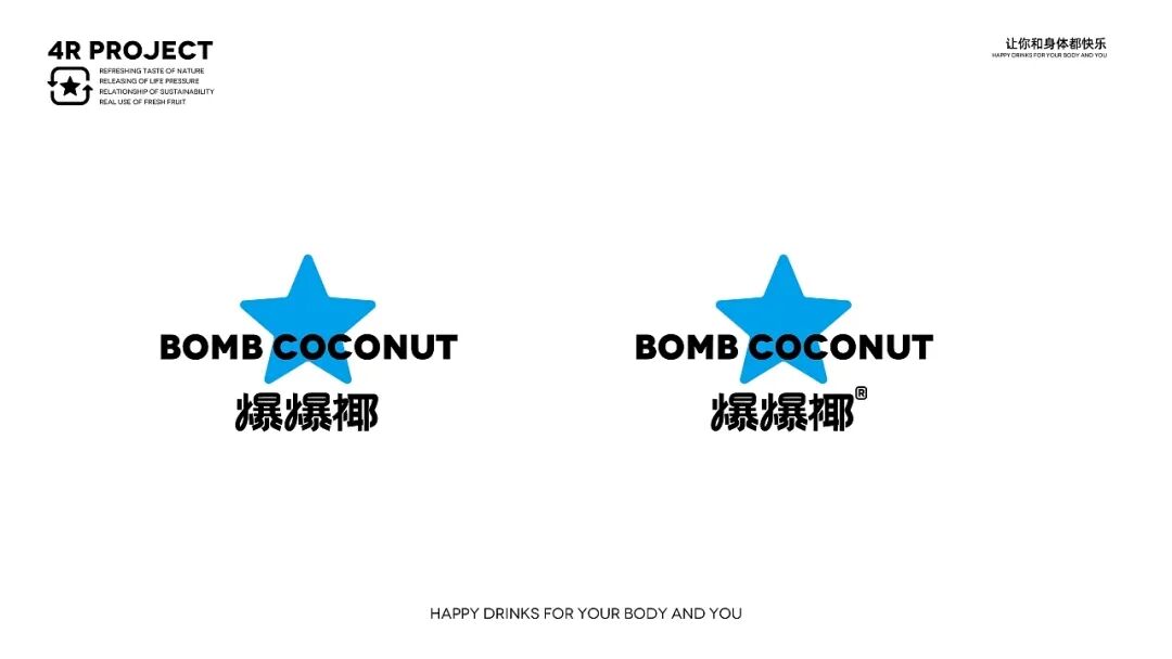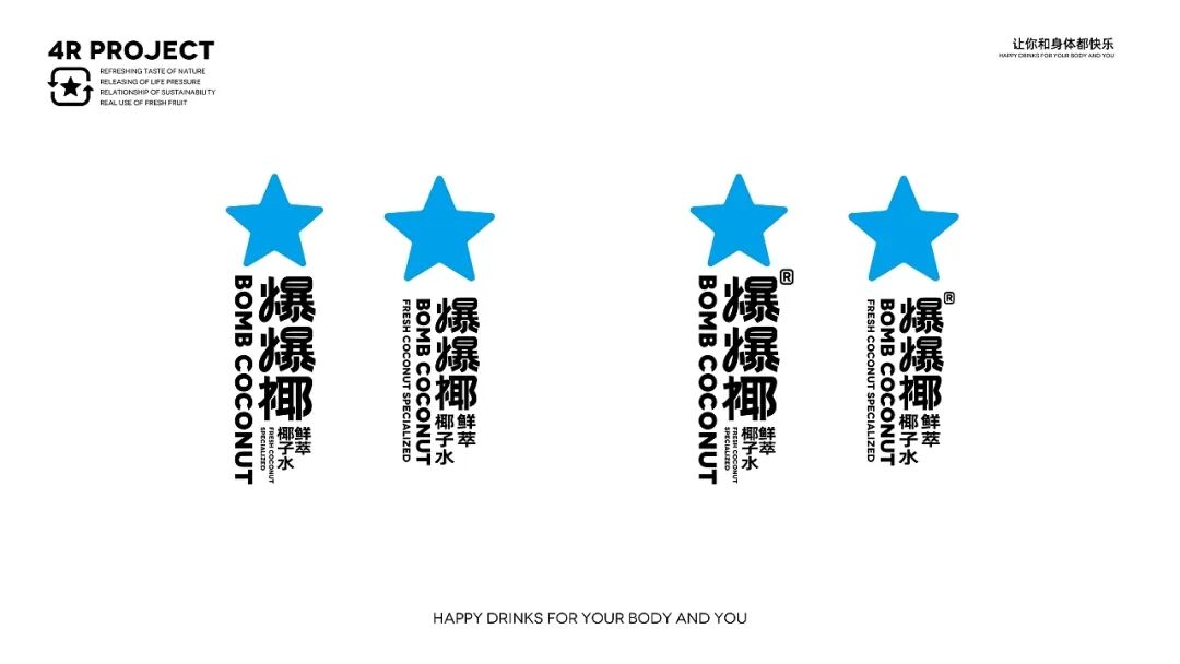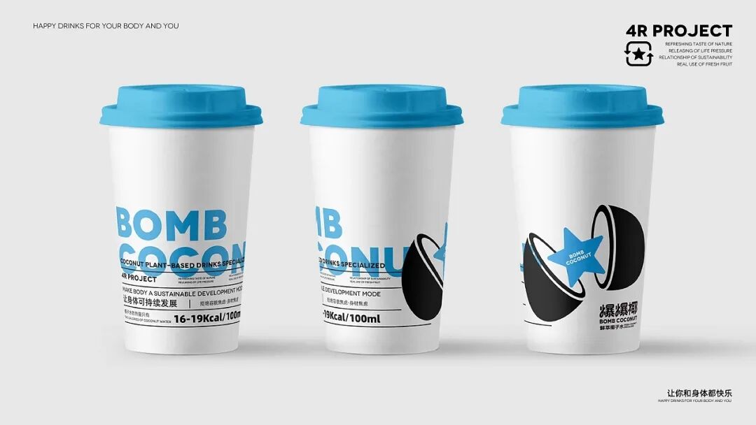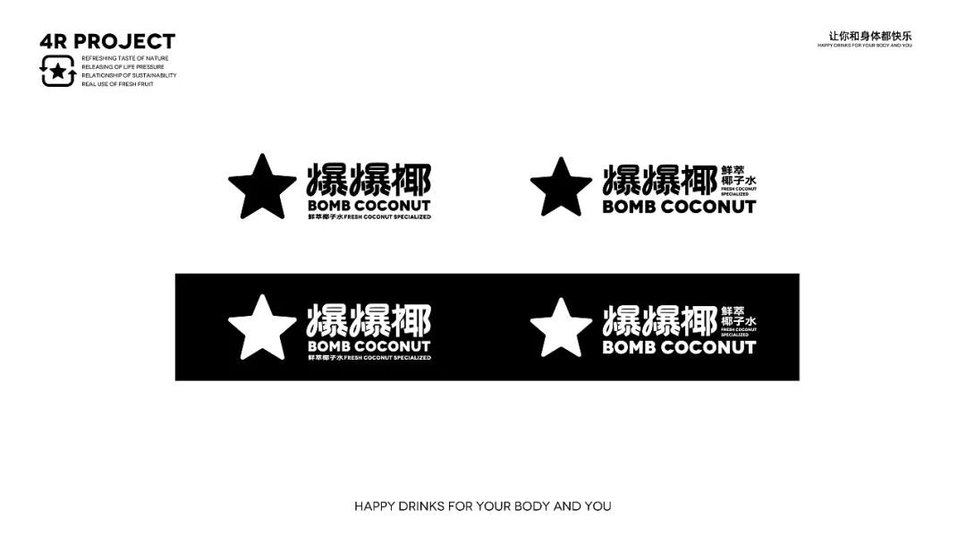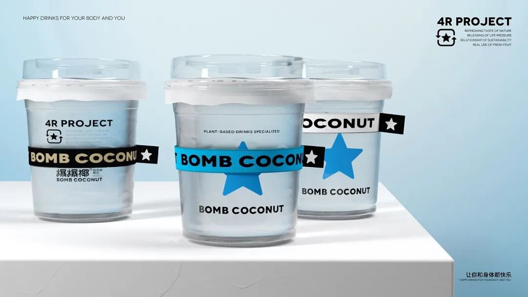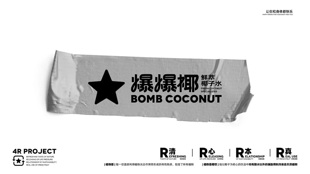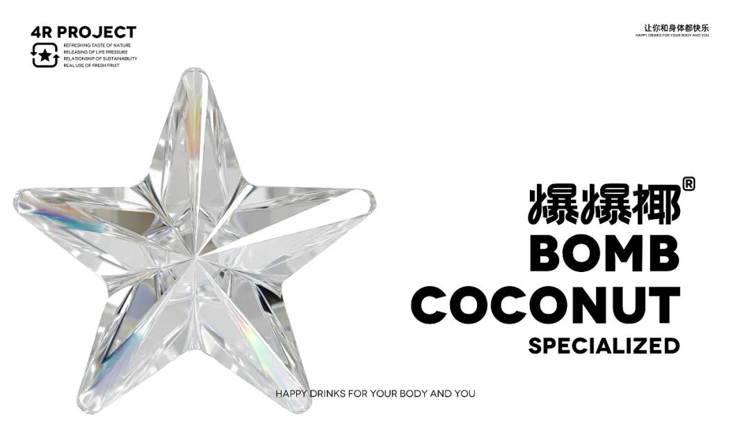 今天分享一个“喝了能获得快乐的”「爆爆椰」椰子茶饮品牌。首先在品类选择上,以今夏最火热的椰子为主角,打造真正的纯果汁形态+植物提取辅料的无添加直饮产品。设计上,围绕“4R”的概念,以五星符号做主视觉,树立品牌形象,彰显品质,助力爆爆椰口碑发展。
