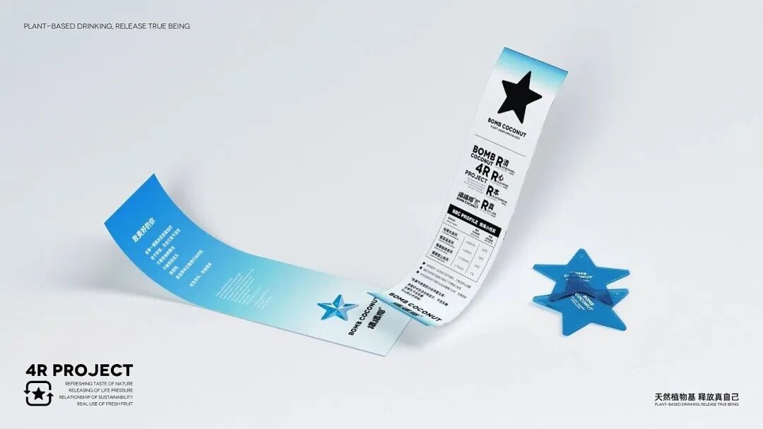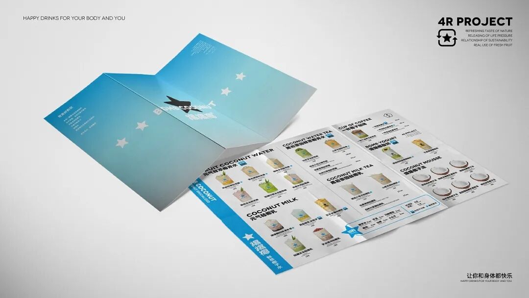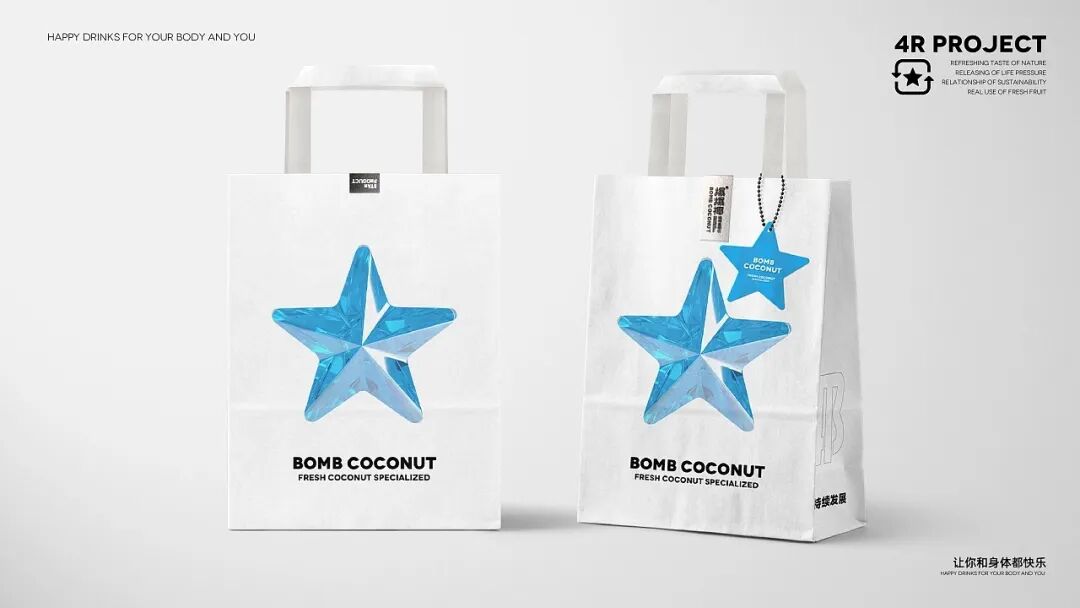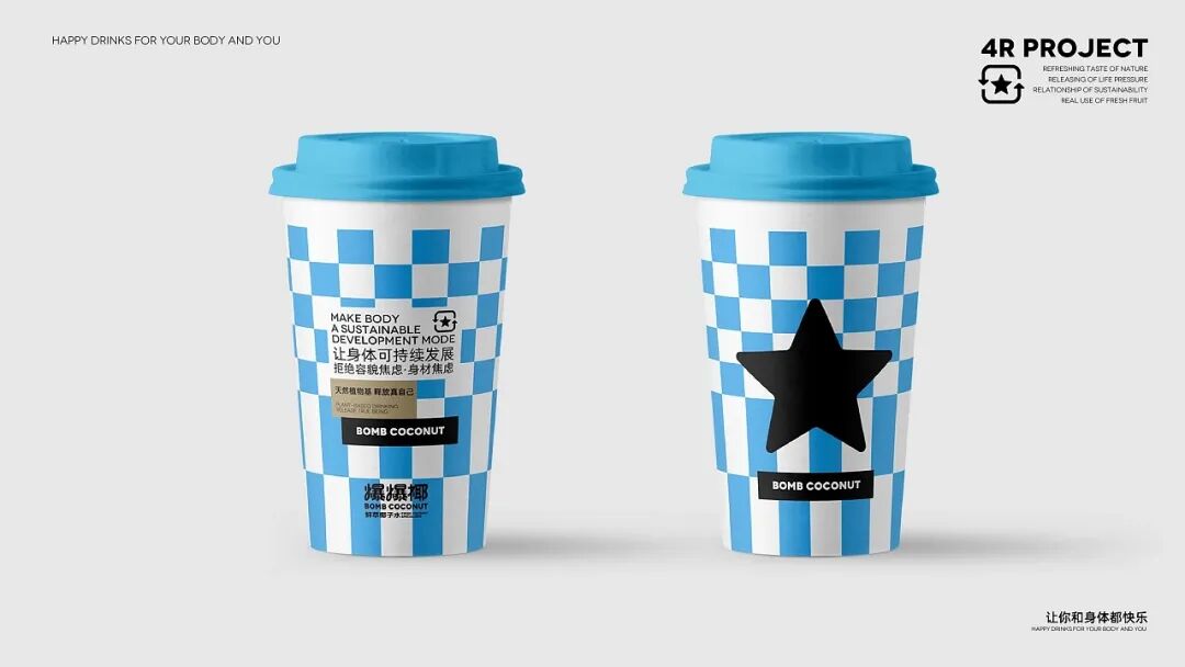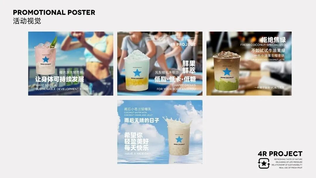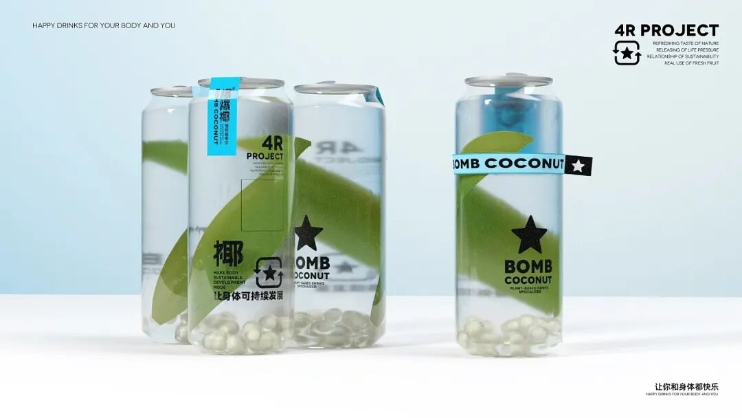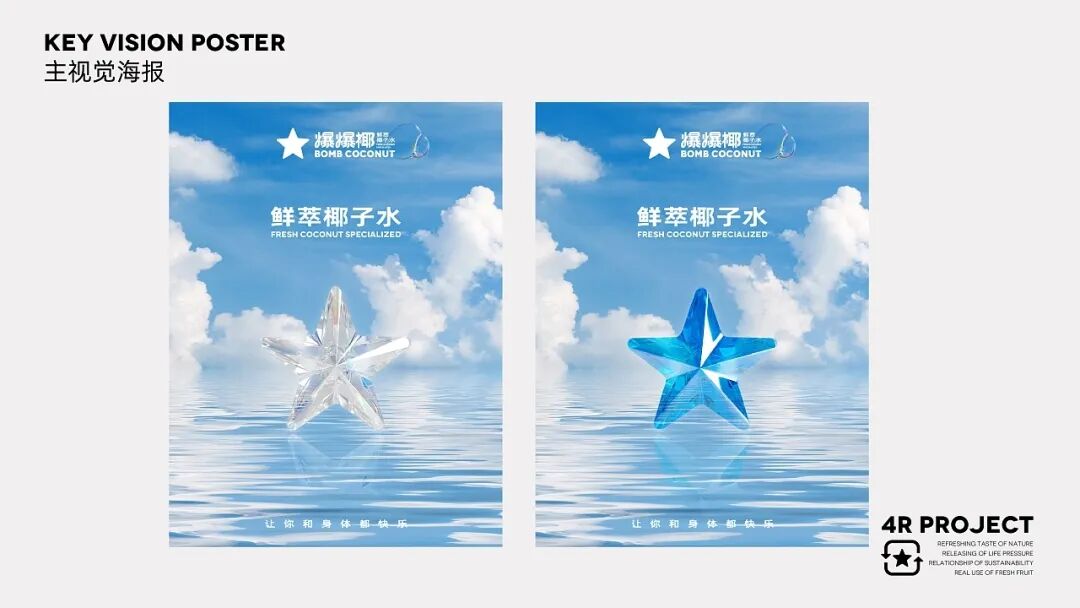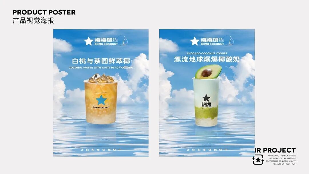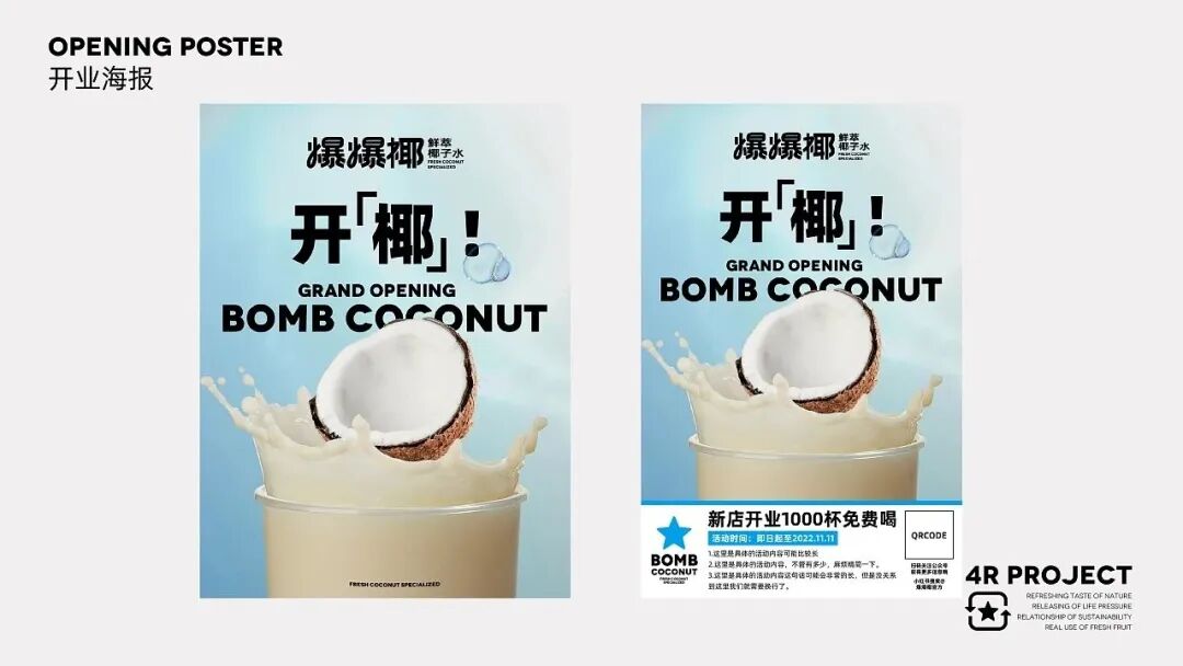 今天分享一个“喝了能获得快乐的”「爆爆椰」椰子茶饮品牌。首先在品类选择上,以今夏最火热的椰子为主角,打造真正的纯果汁形态+植物提取辅料的无添加直饮产品。设计上,围绕“4R”的概念,以五星符号做主视觉,树立品牌形象,彰显品质,助力爆爆椰口碑发展。
