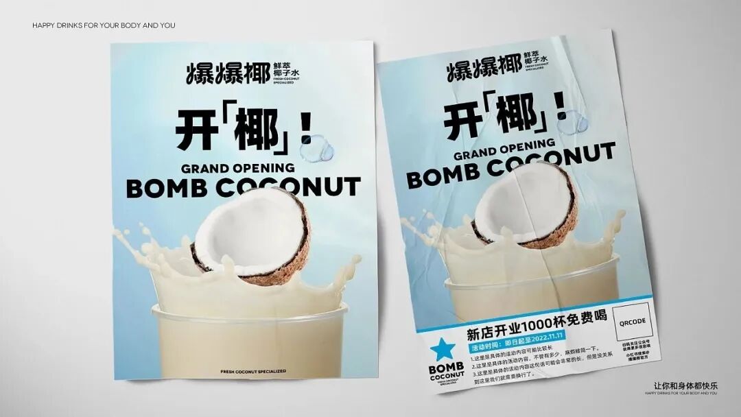 /喝了能收获快乐的「爆爆椰」椰子茶饮,设计亮眼!
