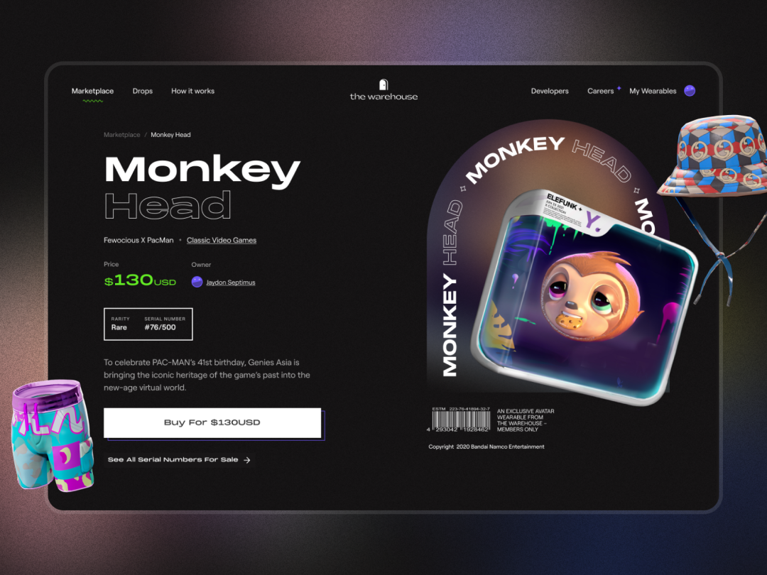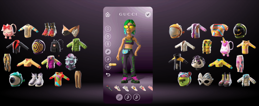 在 The Warehouse 中,人们可以购买不同的面具、鞋子、背包等物品来打造数字世界中的虚拟衣橱。由于针对的目标受众是 Z 世代的用户群体,大部分商品的售价都低于 20 美元,包括来自 Gucci 推出的数字版奢侈品。