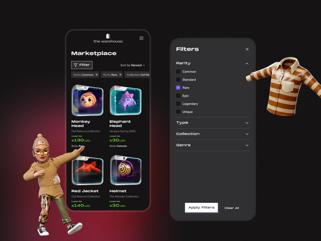 加密游戏巨头 Dapper Labs 则是与 Genies 合作,推出了一个名为“The Warehouse”的全新平台,用户们可以在此平台上装扮他们在 Genies 中创建的虚拟形象,为自己购买虚拟服装。