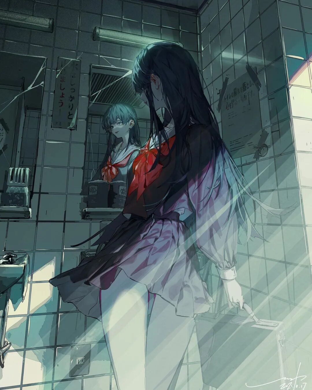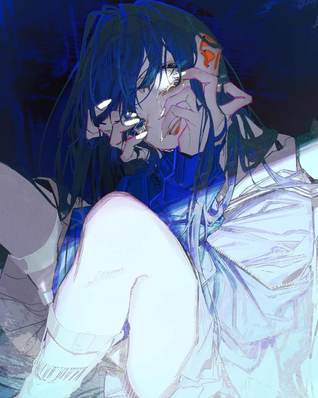 Rolua:下面这幅『新しい私(暂译:崭新的我)』是我在Wacom线上研讨会的绘画直播中画的。当时对方提出的主题是「光与影」,我便想到用人的两个面向来诠释。画作中的女生很厌恶真实的自己,所以会将自己伪装起来迎合他人,在这个过程中,她渐渐产生了「自己究竟是谁」的怪异感受。我便借由光与影,表现出她呈现在别人面前光鲜亮丽的一面,以及肮脏污浊的内心这两个面向。