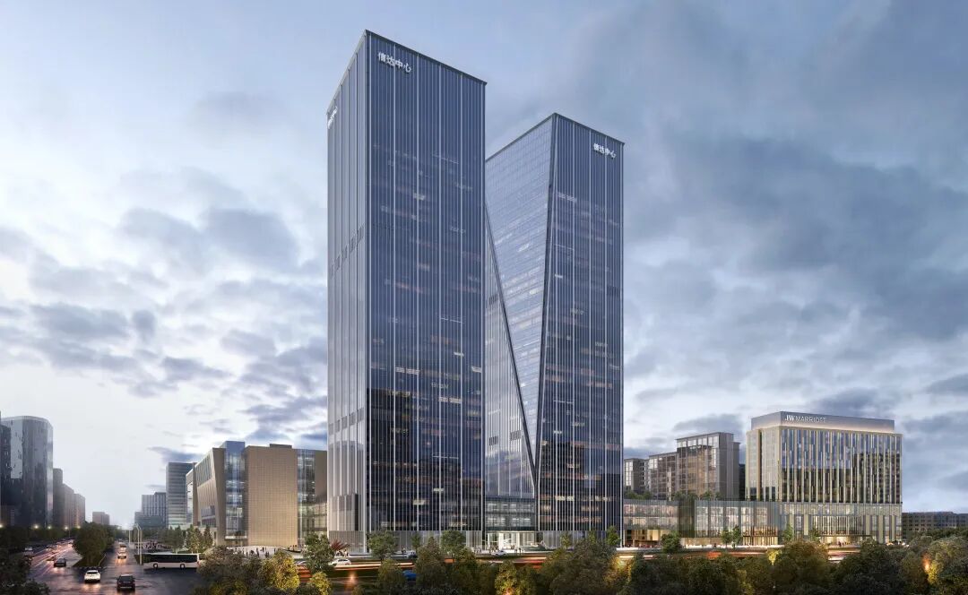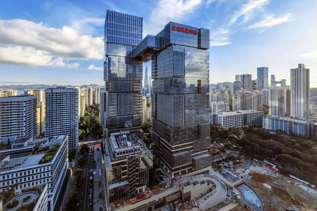 深圳金地威新中心位于中国南硅谷高科技企业总部深圳科技园,位于南山高新区东南角。三期的设计结合打造了一个“绿色、健康和高科技”的科技园。金地威新中心由两座超高层5A级写字楼、裙楼、智能办公空间和可持续生态系统组成。切合绿色办公、智慧办公和地标办公的未来趋势,该项目采用“芯立方”和“盒体”设计,打造出卓越的社交和商务空间。