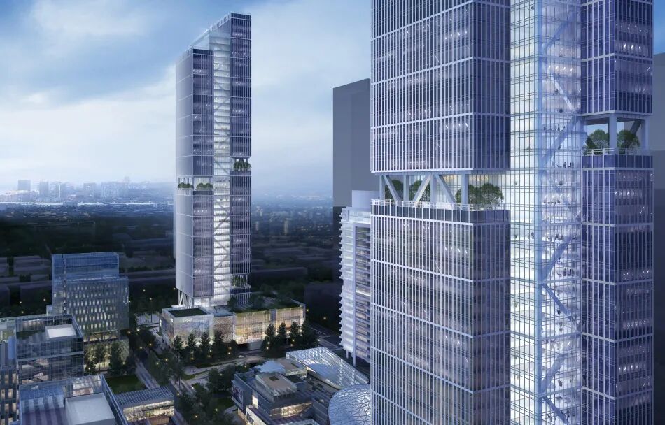 前海中集国际商务中心位于前海片区,而前海片区则是国家大湾区战略的核心区域。在5.5万平米的建设用地上未来将建成总建筑面积近45万平米,集办公、商业、公寓、企业总部于一体的大型城市综合体。CRTKL在此项目中的设计重点在于塑造系统、多层次的城市公共空间并将其与地块内部及地块周边丰富的自然景观资源联系起来,强调城市公共活动对不同属性的建筑功能的支持与联系,将景观资源不仅从水平方向上更是从垂直方向上引入建筑内部,面向公众打造24小时开放、系统、一体化的城市活动空间。地块内丰富的商业业态与户外活动空间的结合可以承载丰富的市民活动,最终为前海提供一处幸福生活的目的地。
