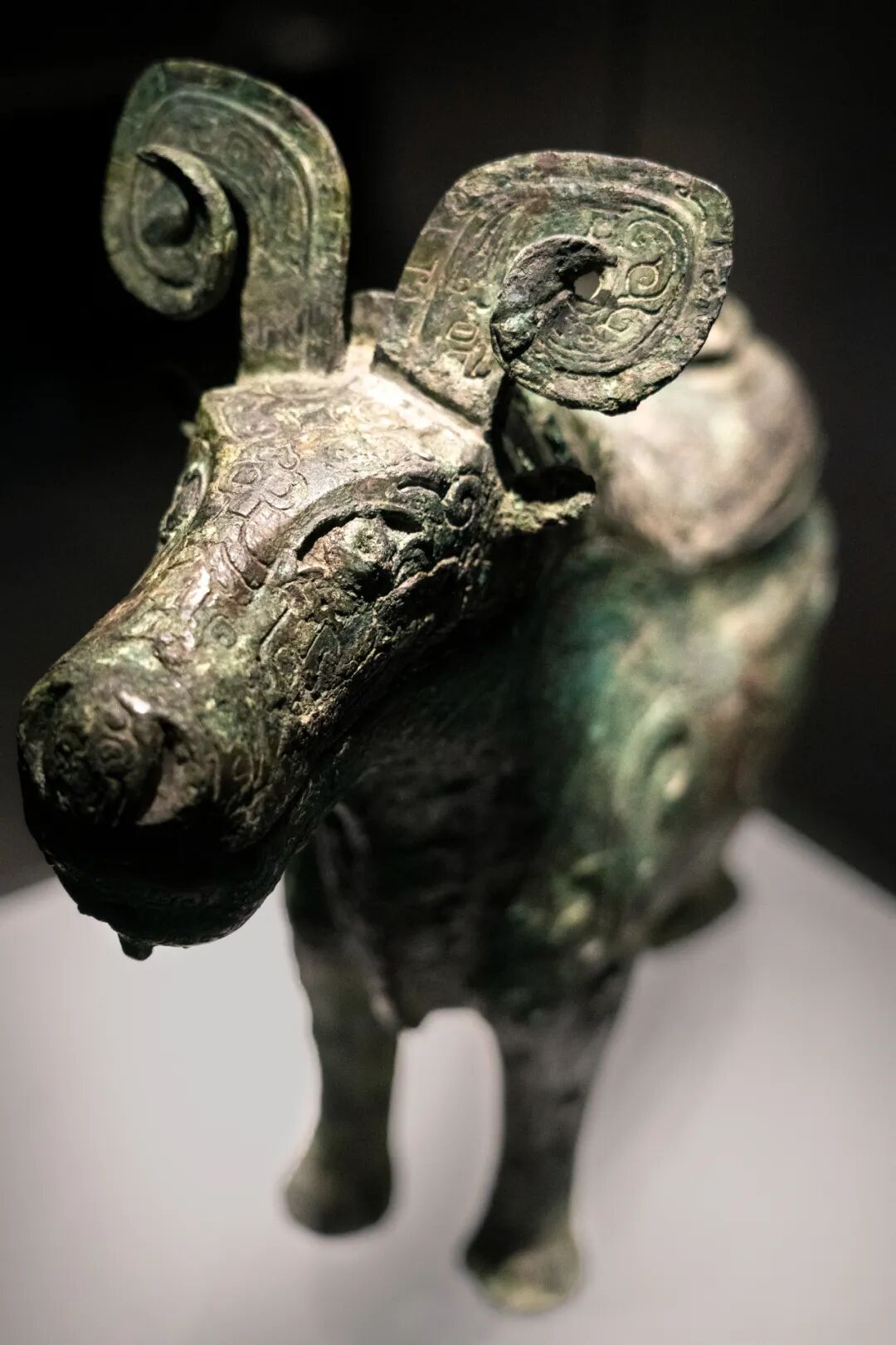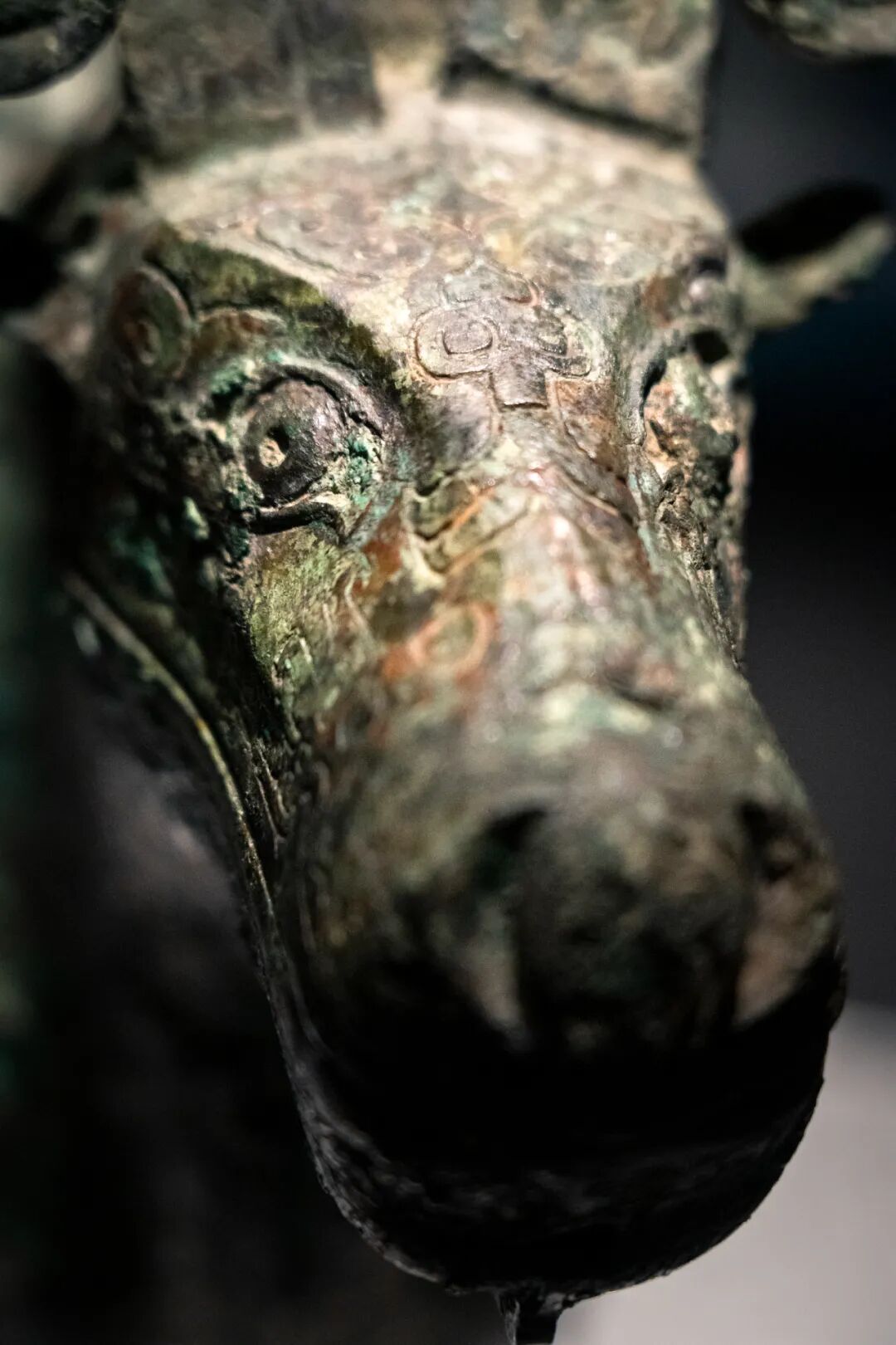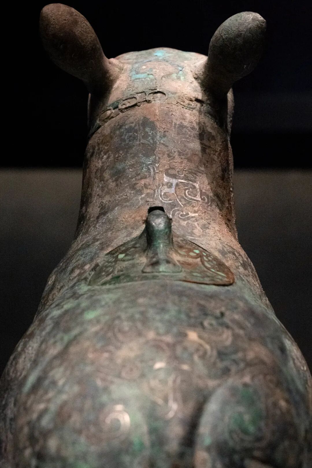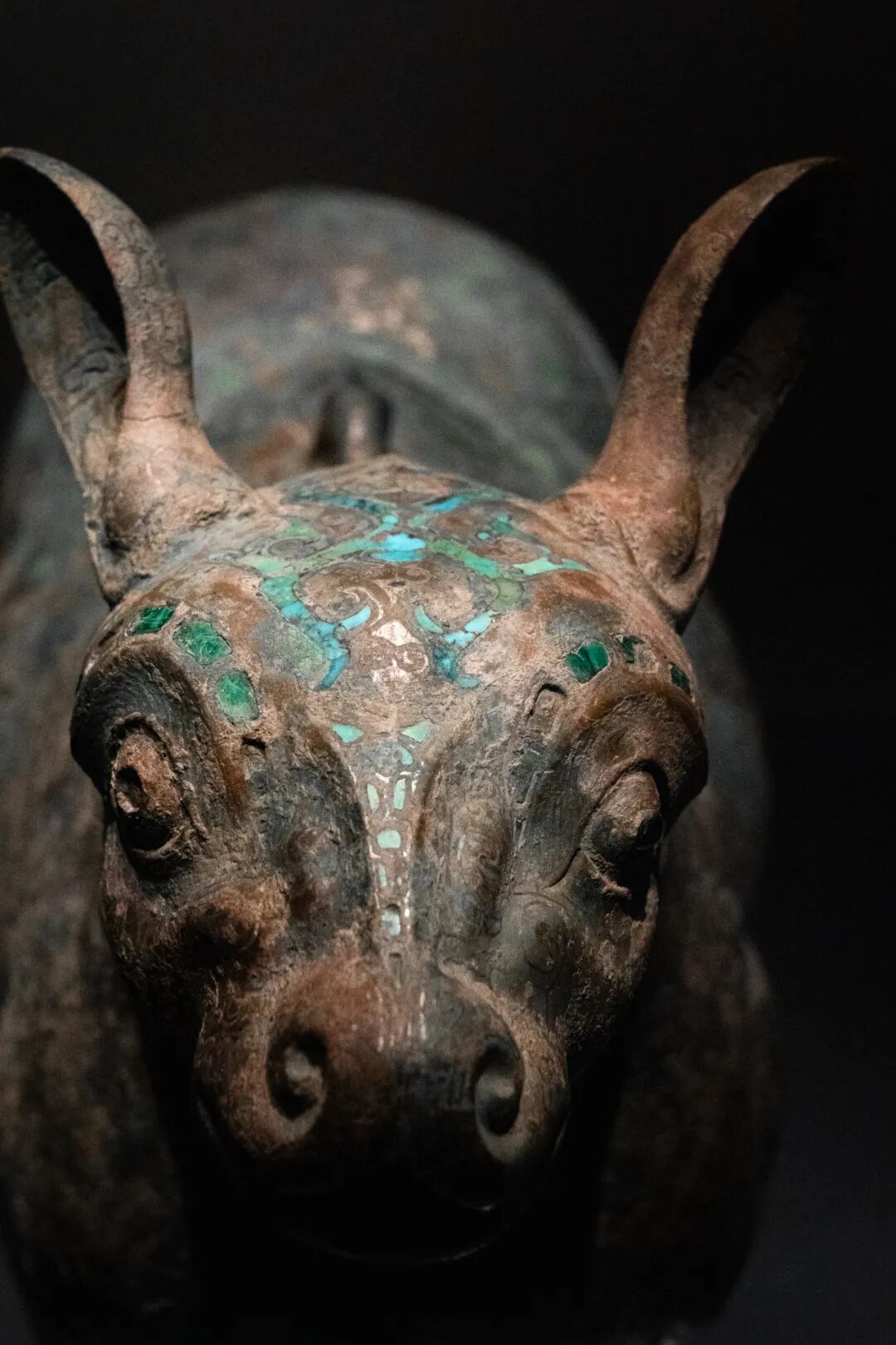 这件在黑暗中泛着翠色的国宝,是件借展文物,叫做牺尊,来自山东淄博临淄的齐文化博物馆。