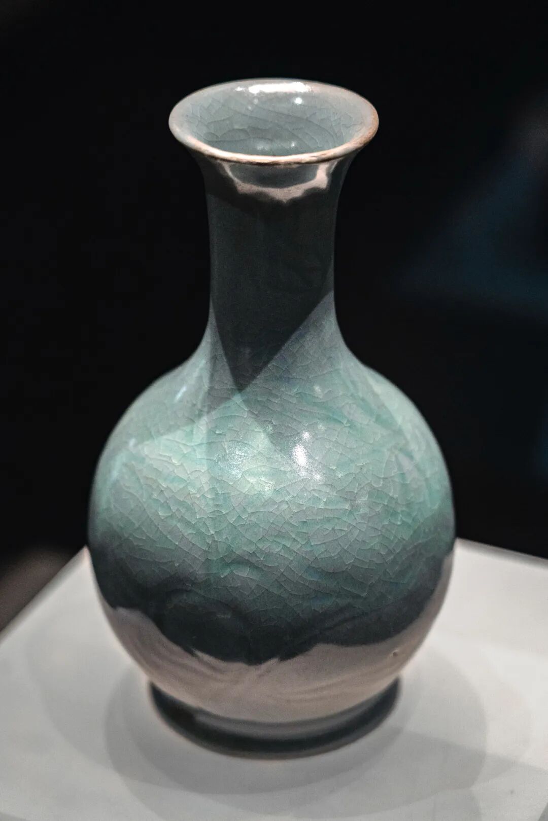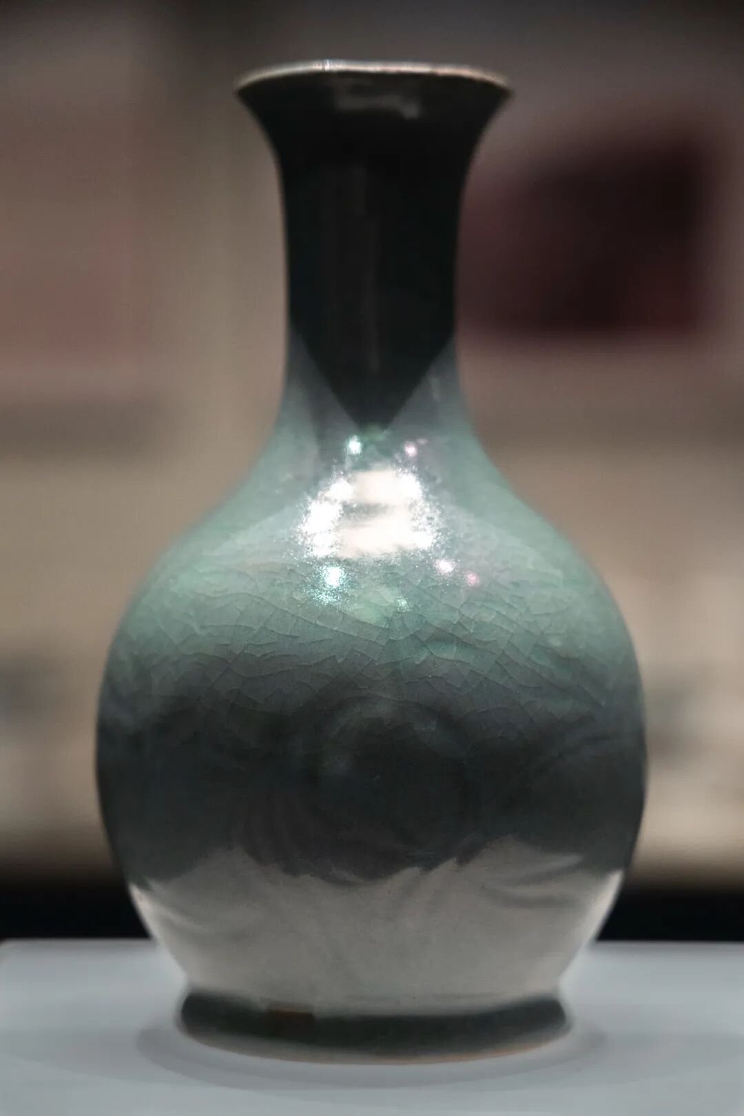 这可能是最接近“天青色等烟雨,而我在等你”的色彩,来自汝窑天蓝釉刻花鹅颈瓶,全球唯一一件刻花汝窑瓷器。