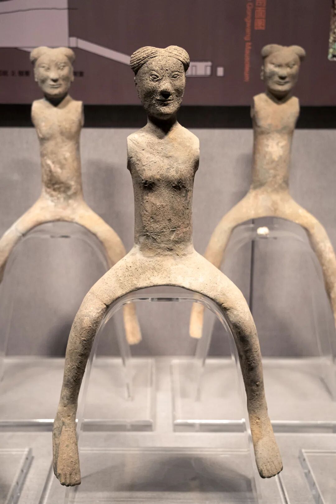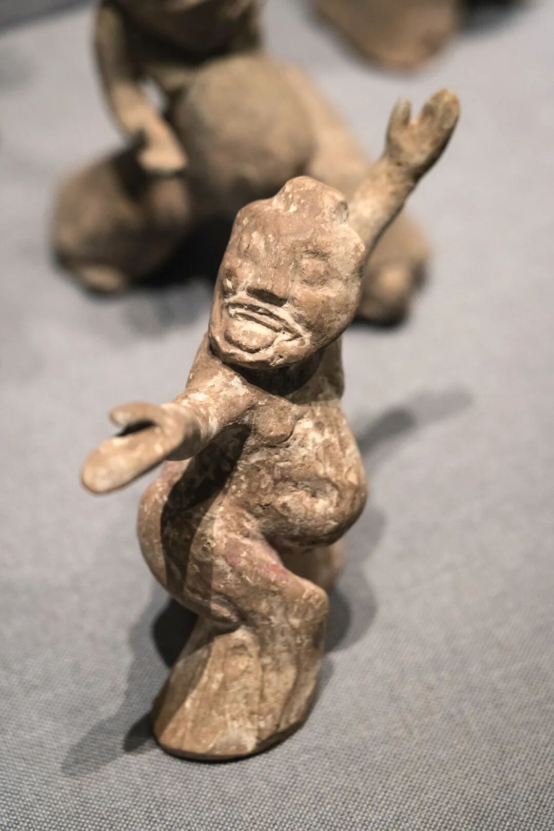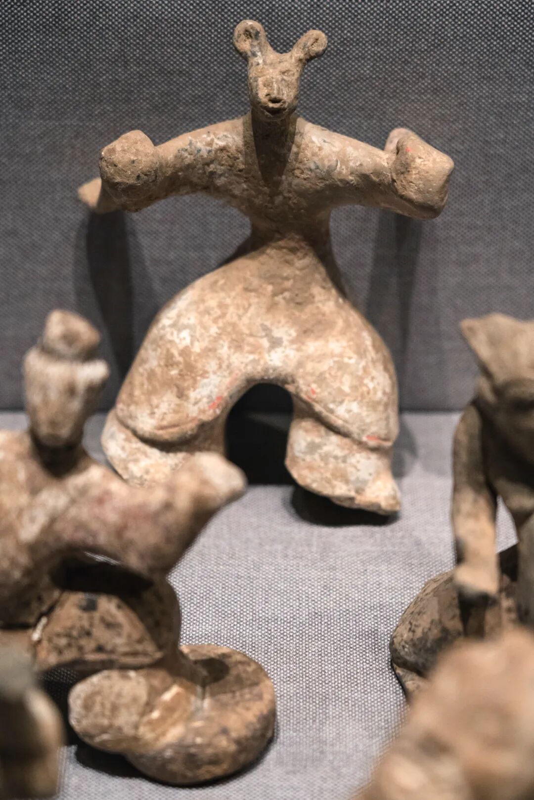 它们叫“百戏陶俑群”,虽出落得有些潦草,却实实在在地刻画了汉代戏乐人物的典型特征。