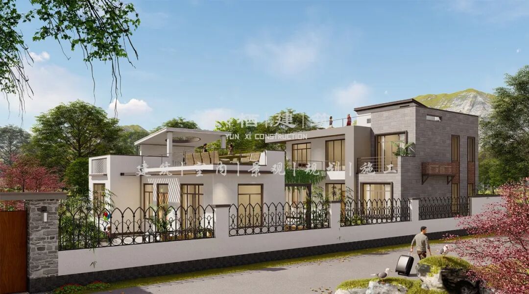该项目位于河南南阳,主体为二层现代别墅。场地的东侧是村里主路,西侧、南侧、北侧均为邻居。
