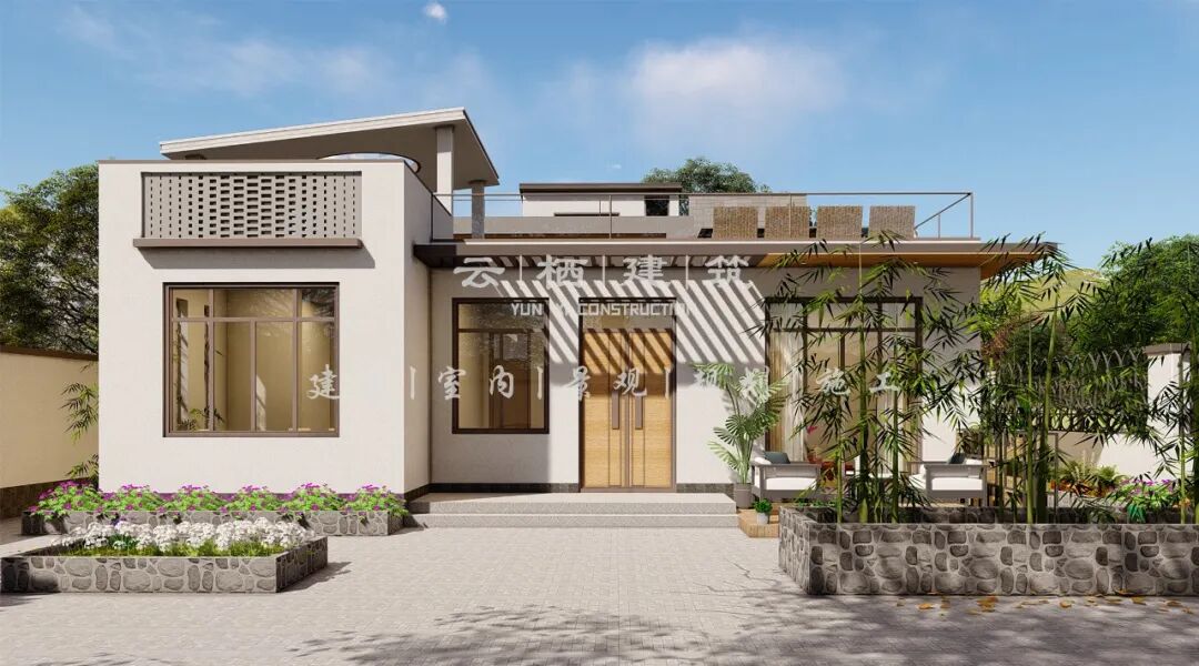 围墙东侧采用镂空方式,形成虚实结合的形体关系,同时增加庭院空间的通透感。