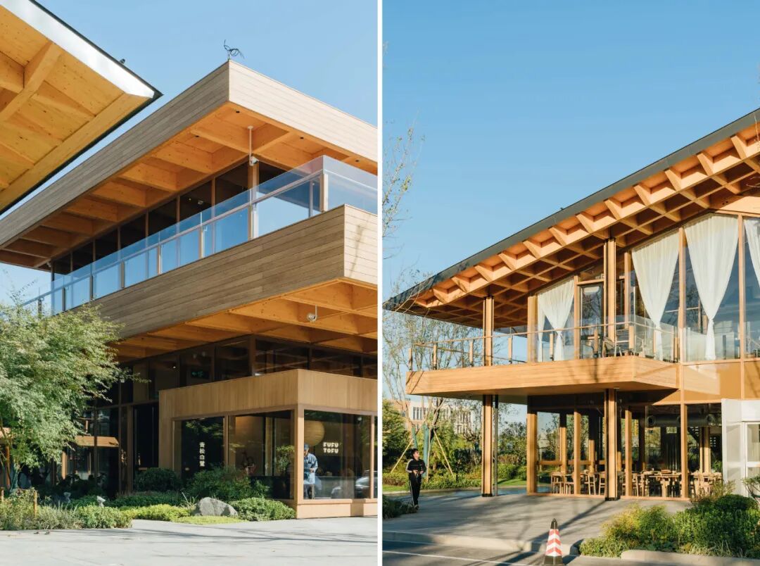 木材本身所具备的环保性与未来性是设计师一直追求的目标。普罗市集大量使用可重复利用的木材搭建,在注重环保的同时,更简洁和模块化的设计也为快速建成提供方便。