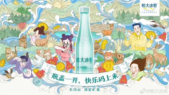 正如恒大冰泉,通过迎合年轻人消费方式的一瓶一码互动营销玩法抢占注意力,并结合内容共创的花样玩法扎根到年轻人的聚集地,不断寻找品牌与年轻用户沟通、互动的最佳表达方式,跟他们玩到一起,让品牌愈发地被年轻群体认可。