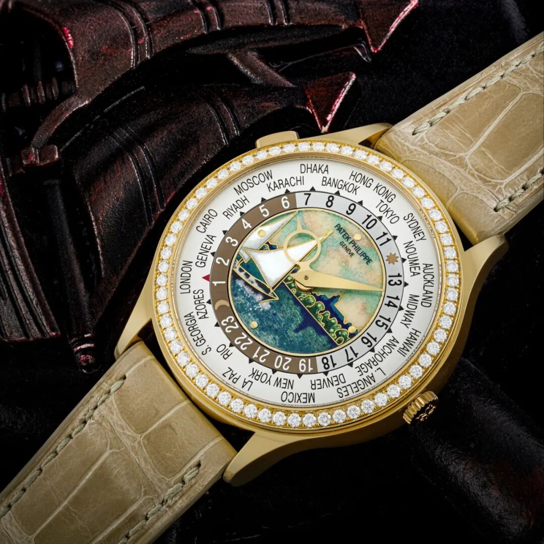 百达翡丽(Patek Philippe)Ref. 7131/175R 18K红金镶钻石世界时间自动上弦女装腕表,配日内瓦湖掐丝珐琅表盘,为纪念百达翡丽175周年而制,限量生产,附原厂证书、盒子及外包装