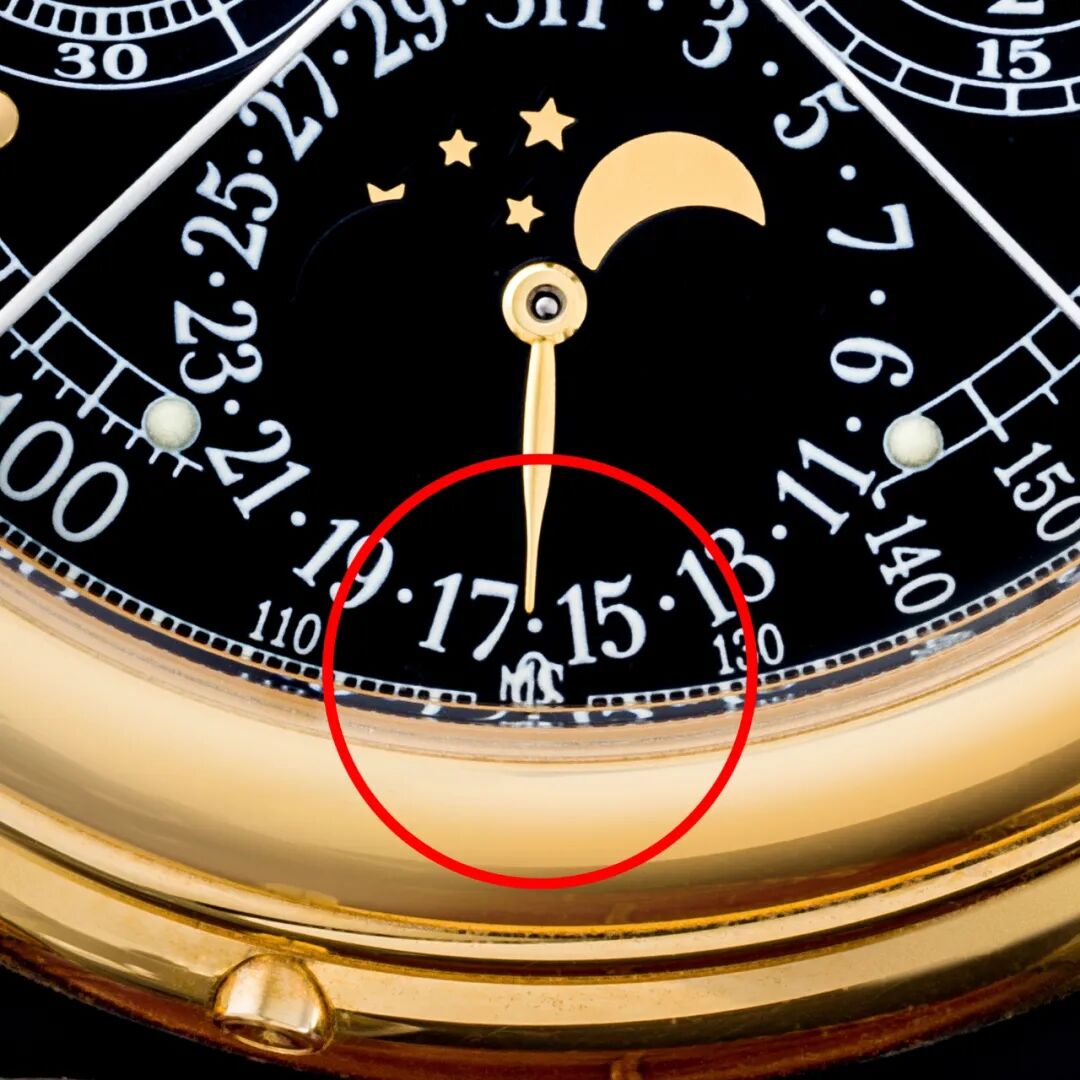 PP所有为天文台竞赛而制的机芯,皆刻有两个编号。以此表作例,机芯桥板上「Extra」字样代表机芯所有零件均经过极为精细的润饰。机芯印有两个日内瓦印记,足证怀表符合天文台表的严格标准。机芯更配备Guillaume摆轮,以减少因温度波动而造成的计时误差。
