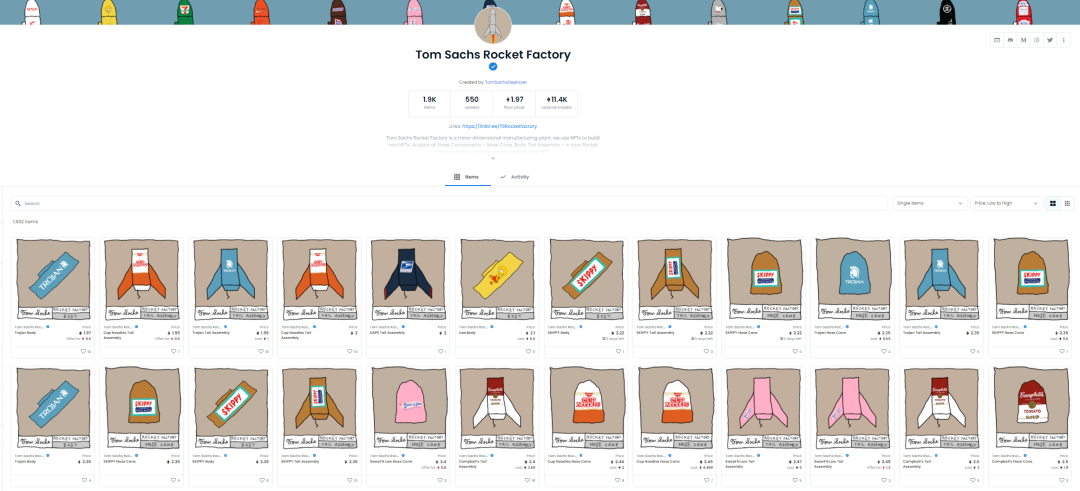在一众被大家喊着美与丑反复横跳的艺术创作中,Tom Sachs的作品因为其天马行空的想象力和大胆的外观设计,以及严密的排列与装置,统一了大众的审美。未来的几年,元宇宙中是否也能更多看到装置艺术的美呢?