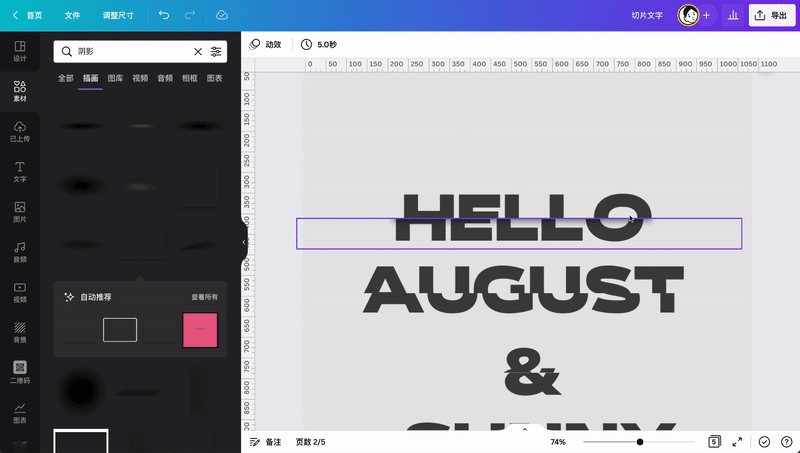 在素材里搜索【阴影】,调整大小并将多余的部分裁切掉。根据自己的需要调整放置位置,形成阴影效果。