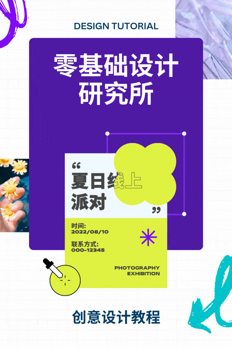 在周围添加其他文字信息、形状进行排版。就得到了一张文字切片效果的海报啦。