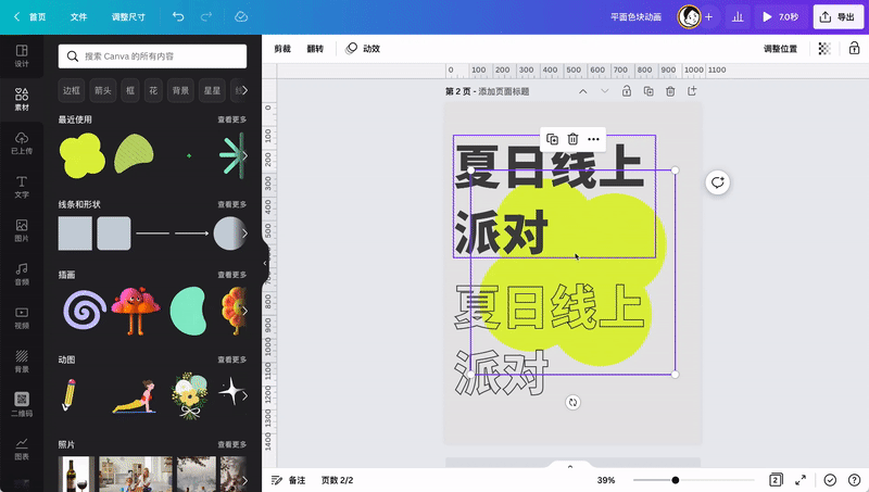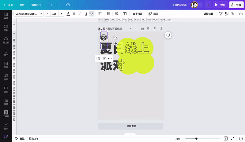 每一页的视频都设置好了之后,就可以直接导出为动图,或者为整个视频设置背景音乐,导出整个视频。