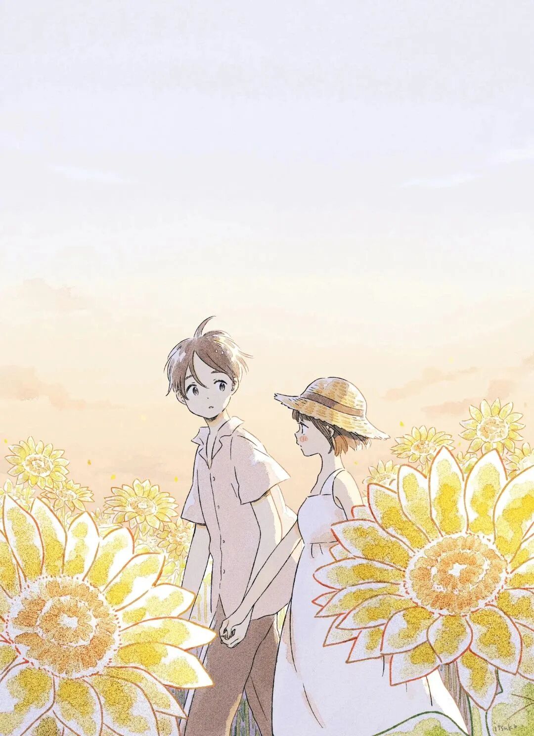 插画师いつか笔下的这一组青春故事插画,人物的笑容永远充满感染力,柔柔的线条和充满空气感的画面,感觉空气都是甜甜的草莓味,画风清新可爱。